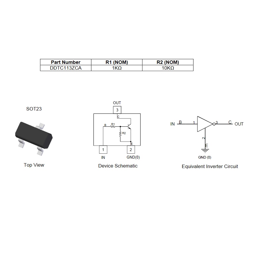 DDTC113CZA-7-F N02 NPN Transistor Pre-biased Small Signal Surface Mount SMD SOT23