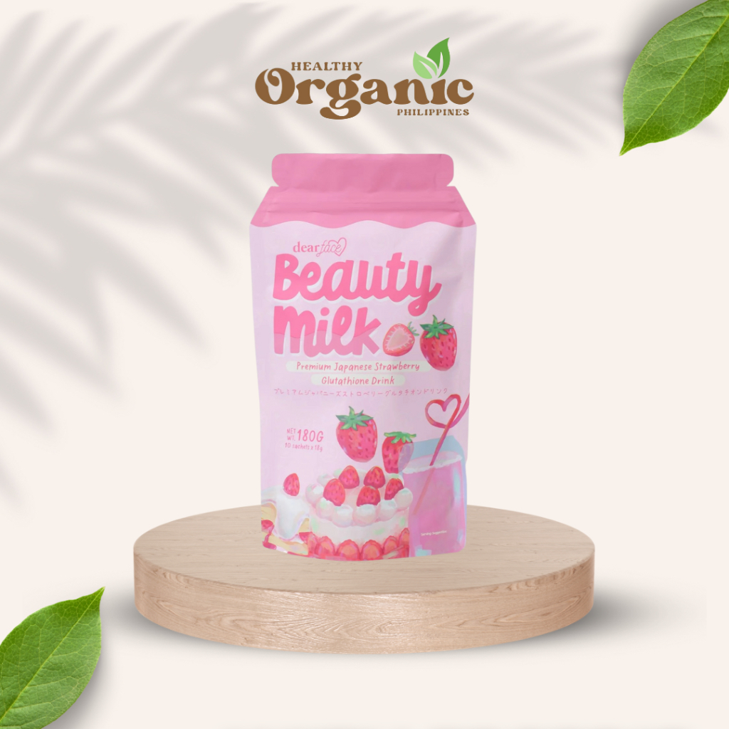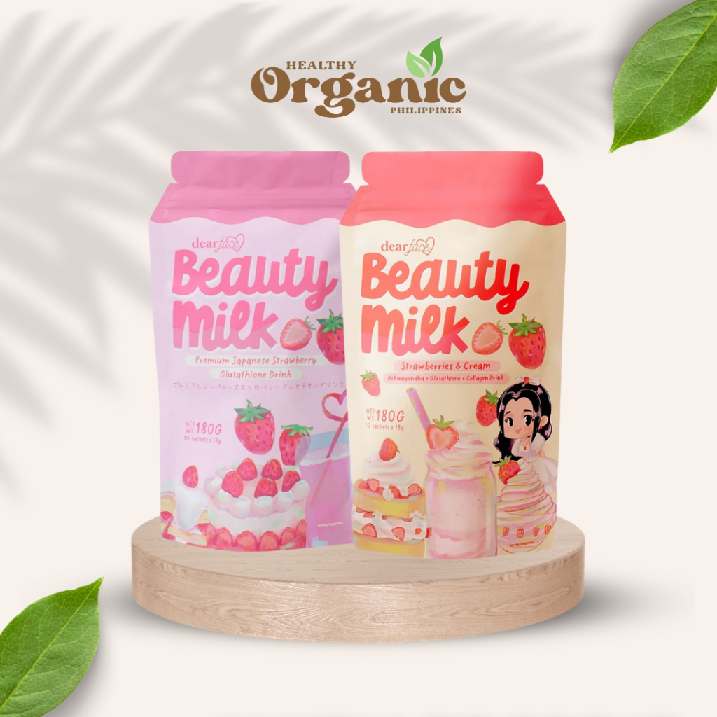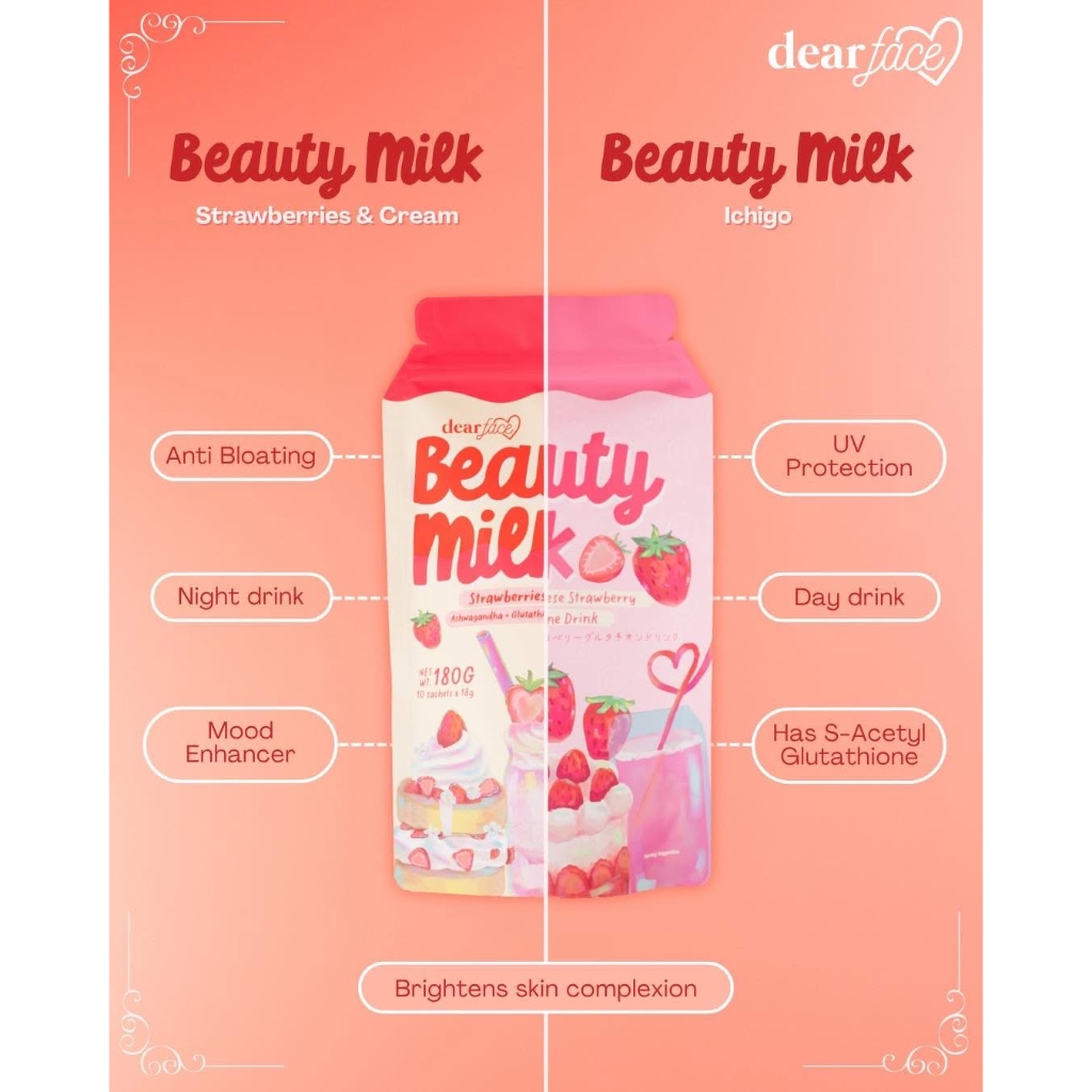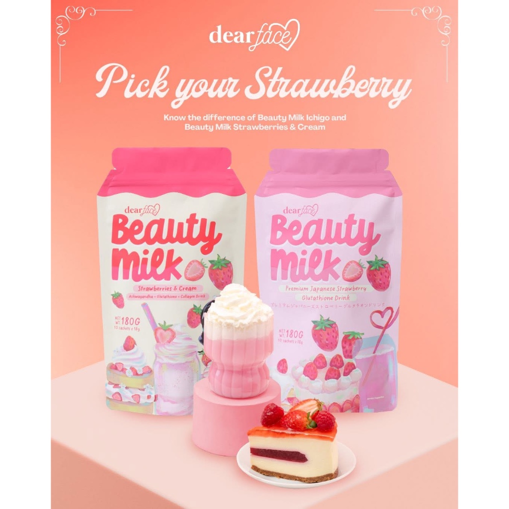 DEAR FACE Beauty Milk Strawberry Cream Whitening Glutathione Ashwaganda Stress Relief Collagen Pouch