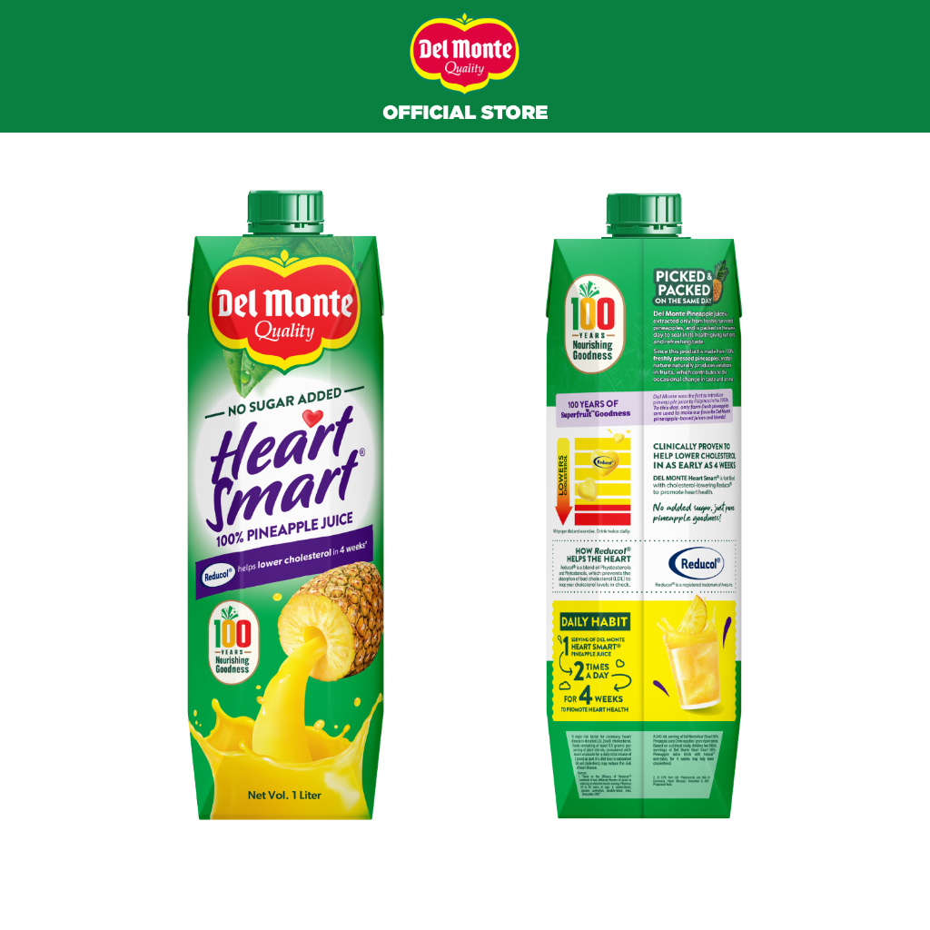 DEL MONTE 100% Pineapple Juice Drink Heart Smart with Reducol for Lower Cholesterol - 1L Tetra