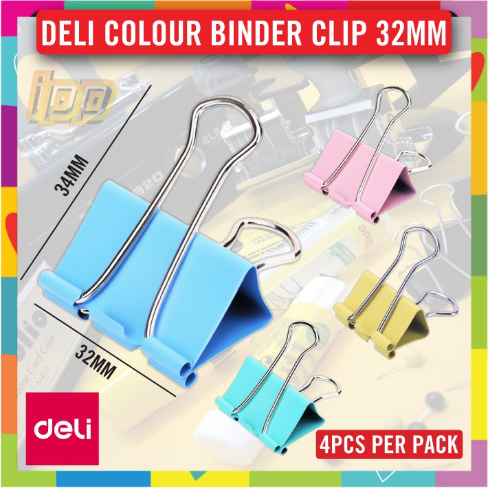 DELI Colour Binder Clips 25mm High Quality Binder Clip - Klip Pengikat Berwarna (4pcs Per Pack)