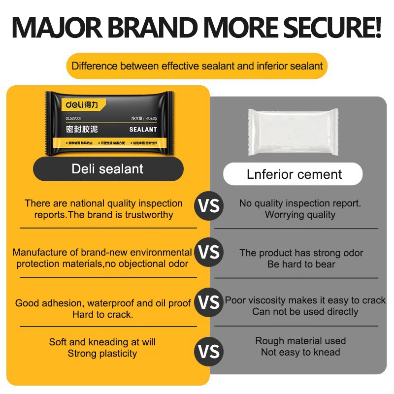 DELI Original Waterproof Sealant Cement Clay Mud 40g Wall Holes Sealant Mud Fireproof