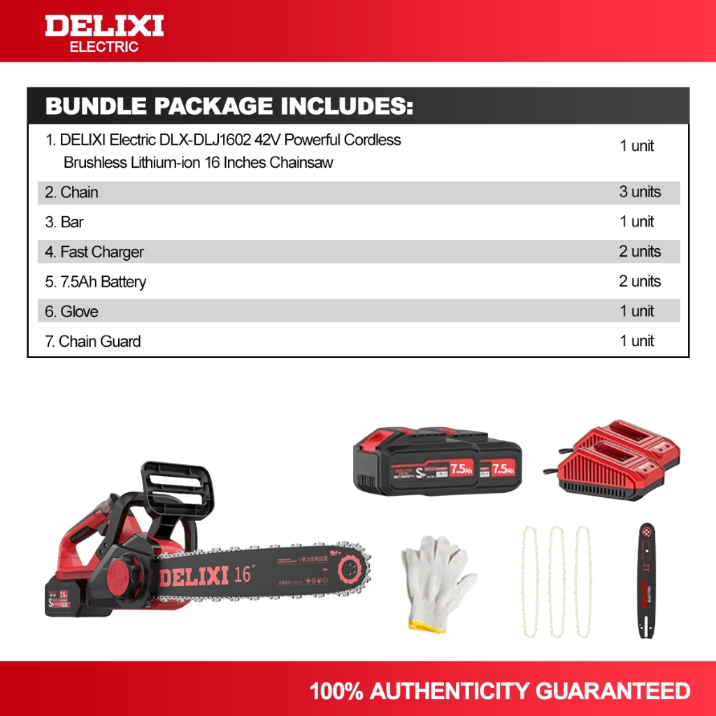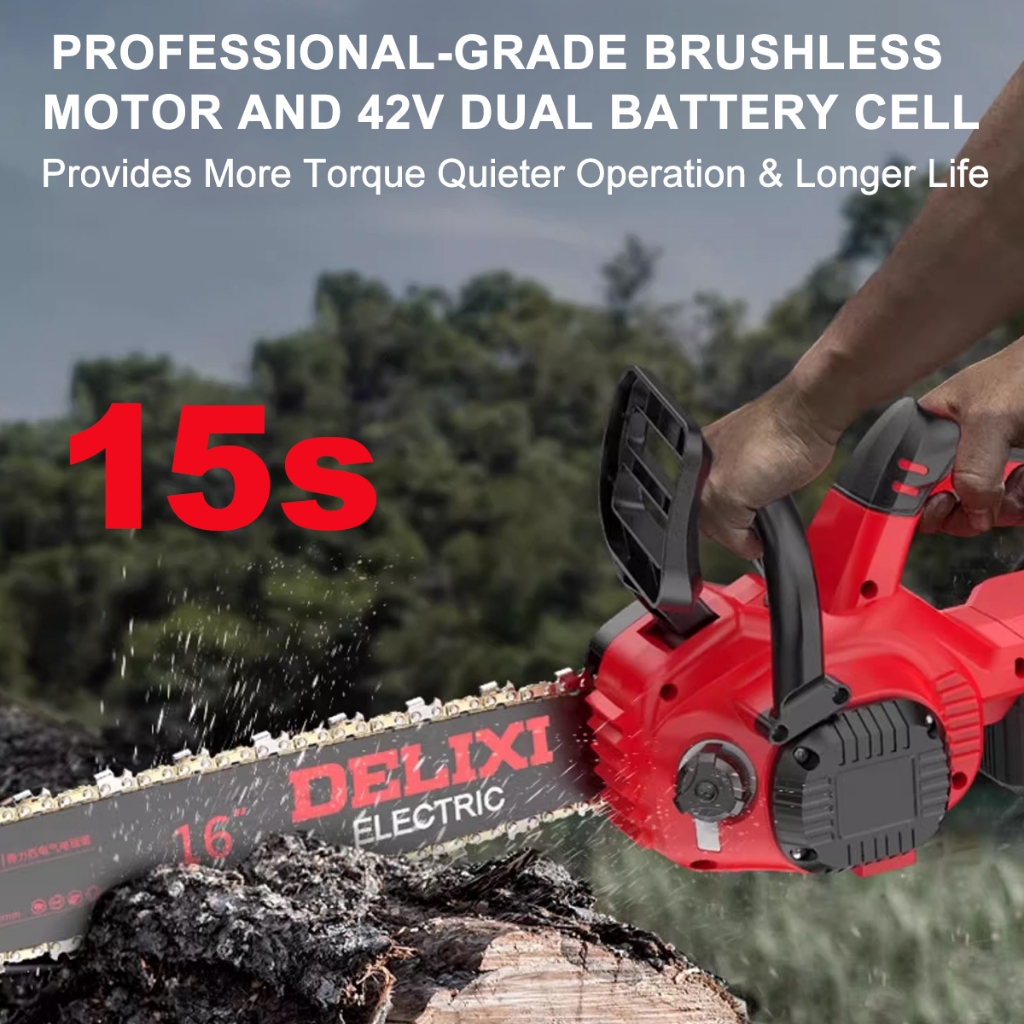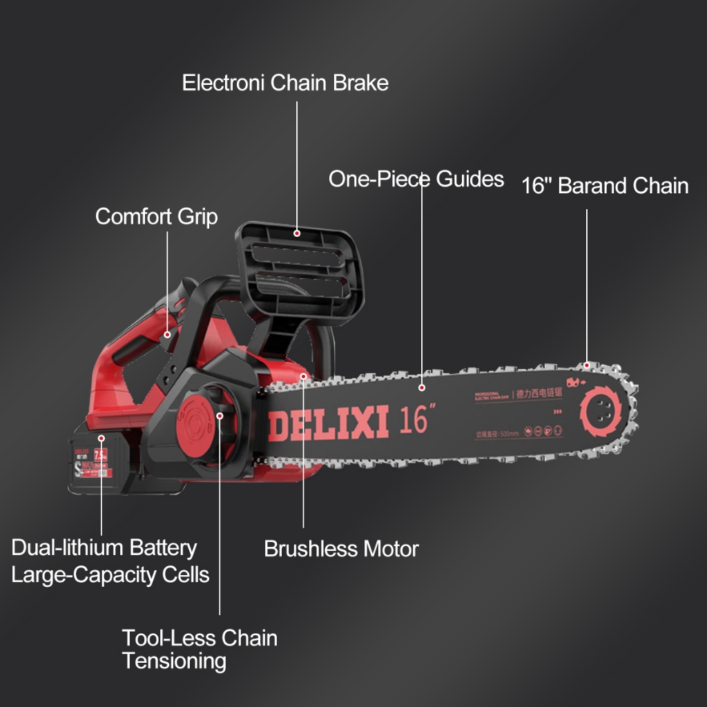 DELIXI Electric DLX-DLJ1602 42V 16 Inches Powerful Cordless Brushless Chainsaw