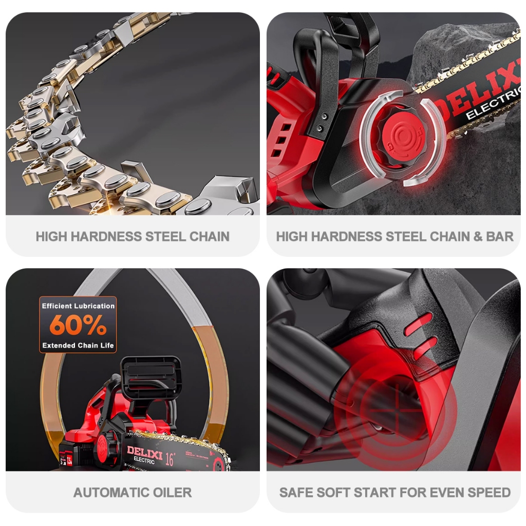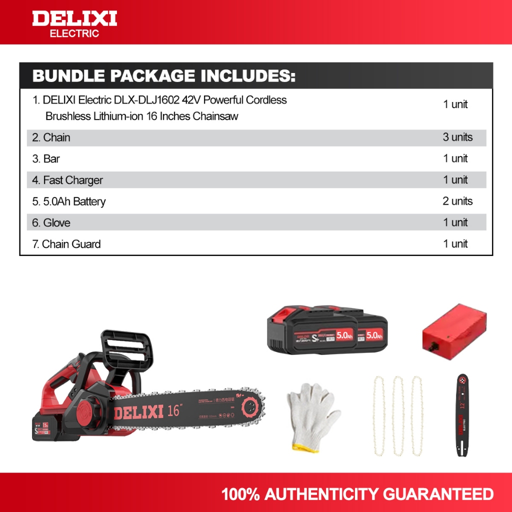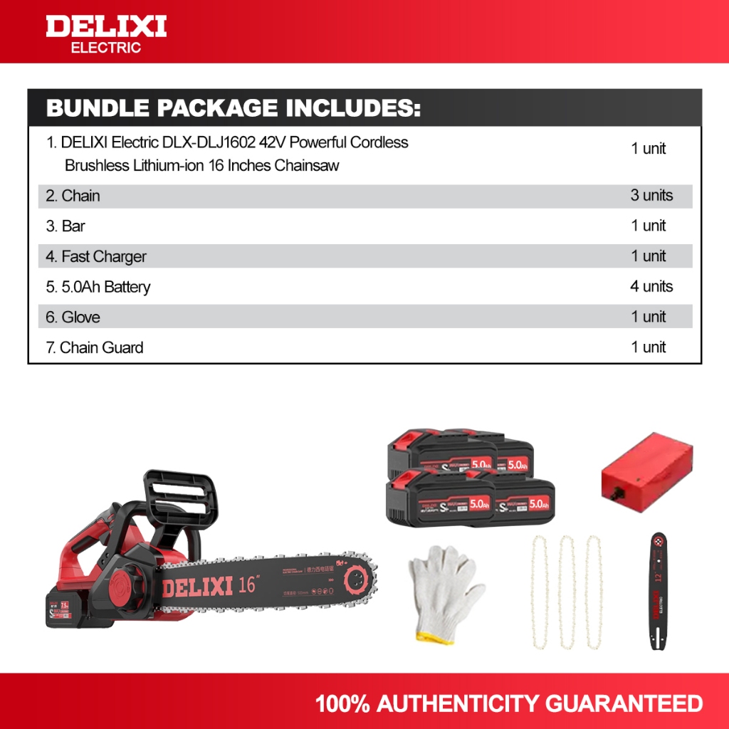 DELIXI Electric DLX-DLJ1602 42V 16 Inches Powerful Cordless Brushless Chainsaw