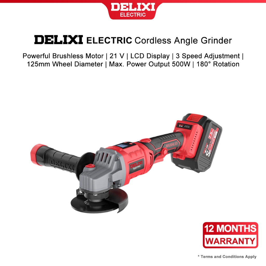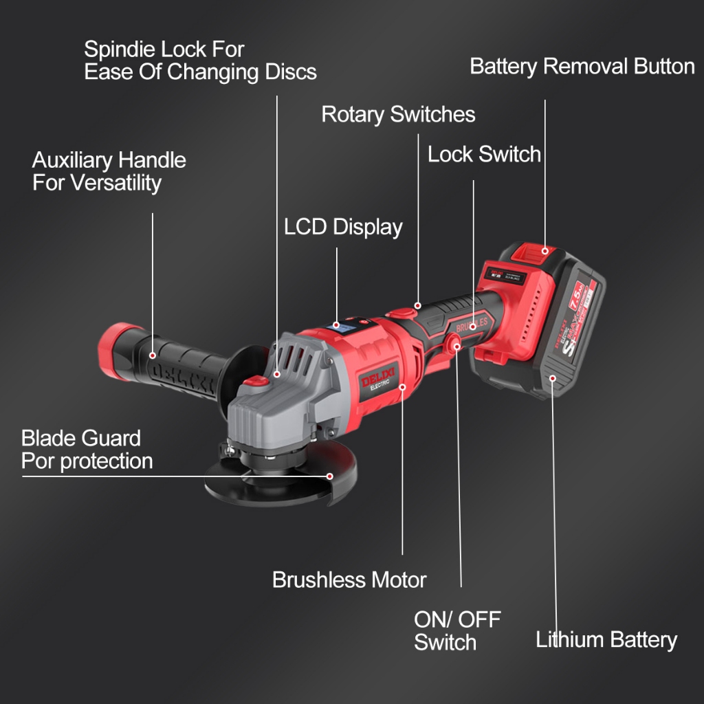 DELIXI Electric DLX-GD1361 21V Cordless Brushless Angle Grinder with LCD display