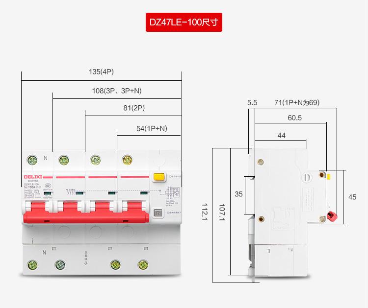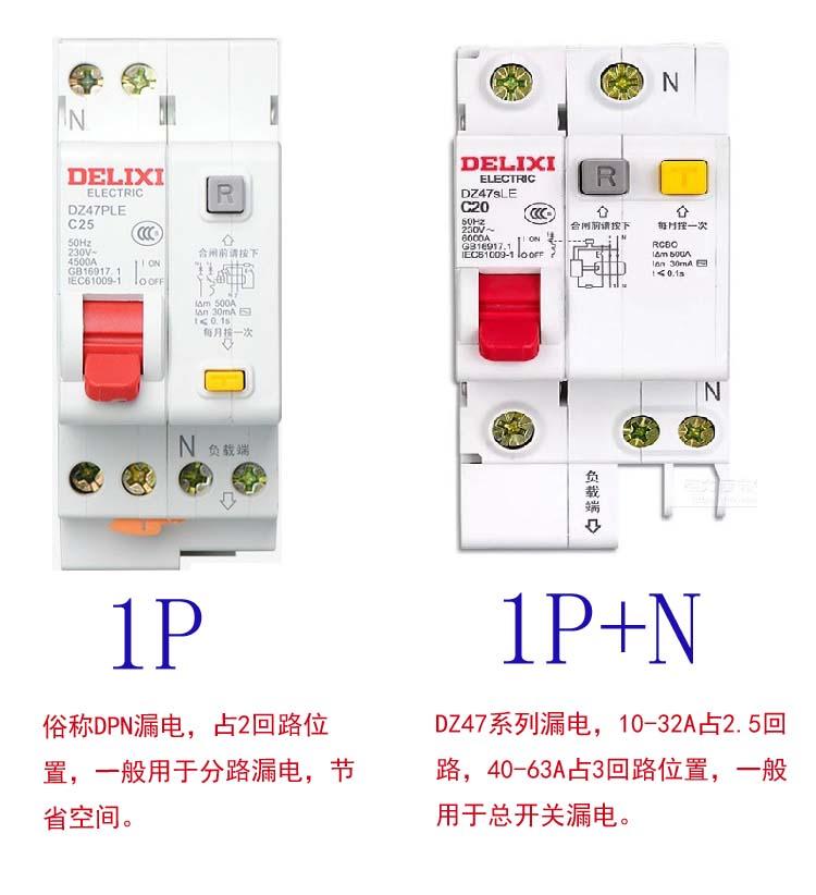 DELIXI RCBO RCD Circuit Breaker 2P DZ47sLE 2P 6A 10A 16A 20A 25A 32A 40A 50A 63A 100A 125A