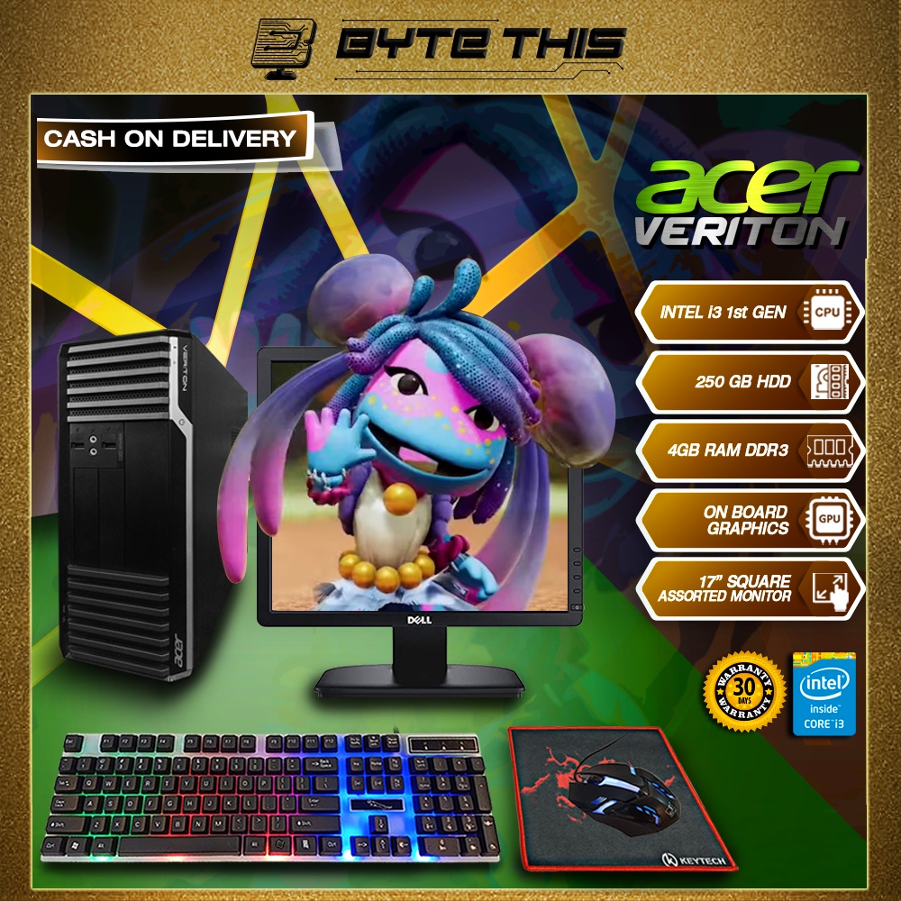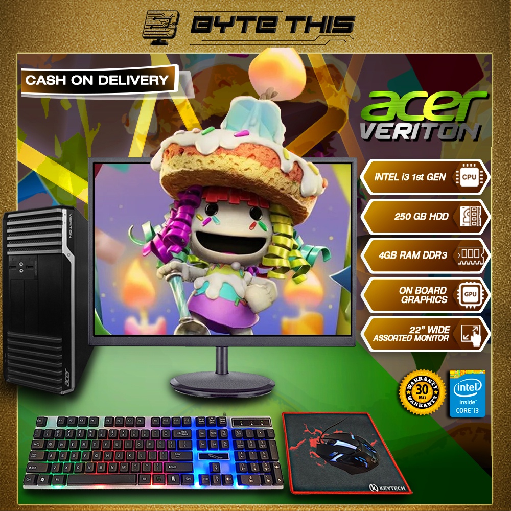 DESKTOP CORE I3 1ST GEN | 4GB RAM DDR3 | 250GB HDD | ACER VERITON | ASS. MONITOR | ONBOARD GRAPHICS