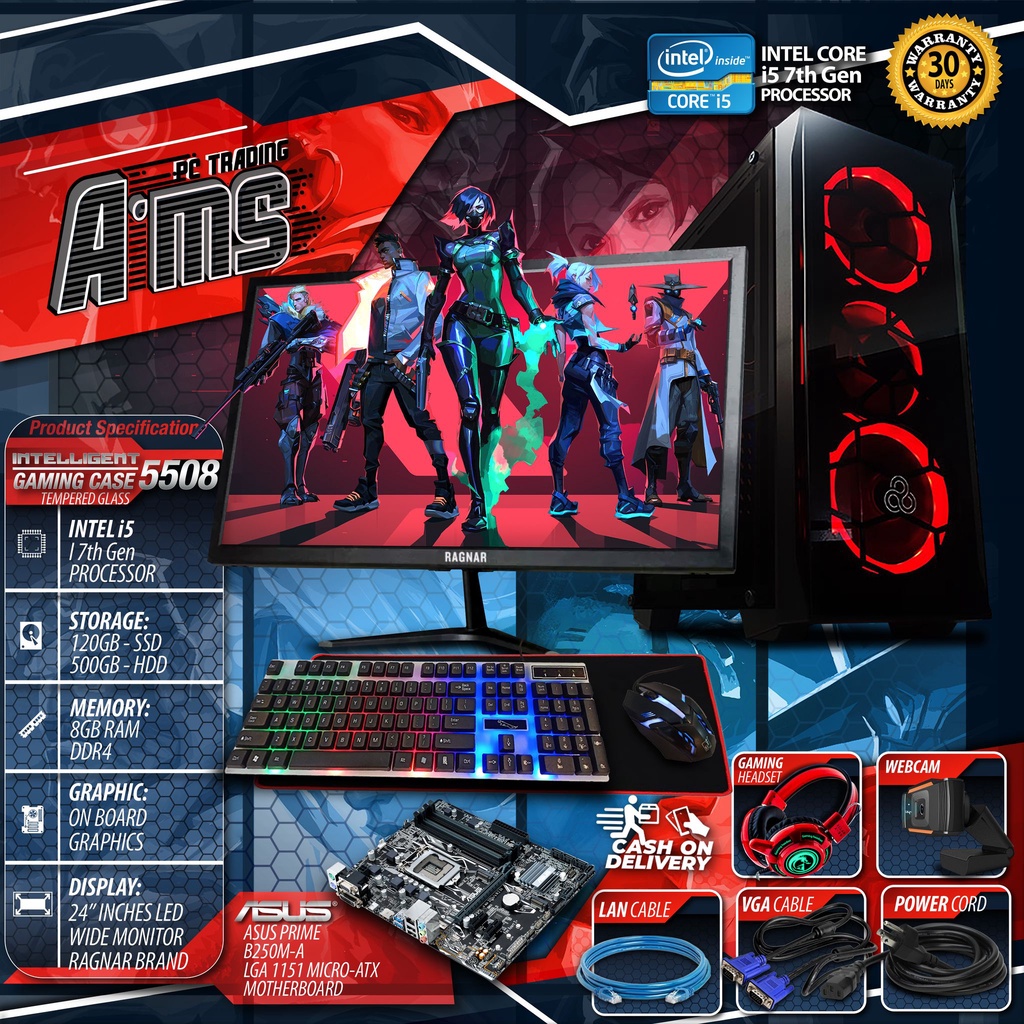 DESKTOP Intel i5 7th Gen Processor 8GB RAM DDR4 120GB SSD/500GB HDD 19WIDE MONITOR(assorted brand)