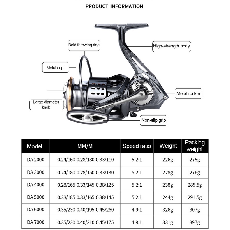 DEUKIO Fishing Reel 2000-7000 Series Metal Spinning Reel Max drag 15kg Outdoor Lure Throwing Saltwater Reels