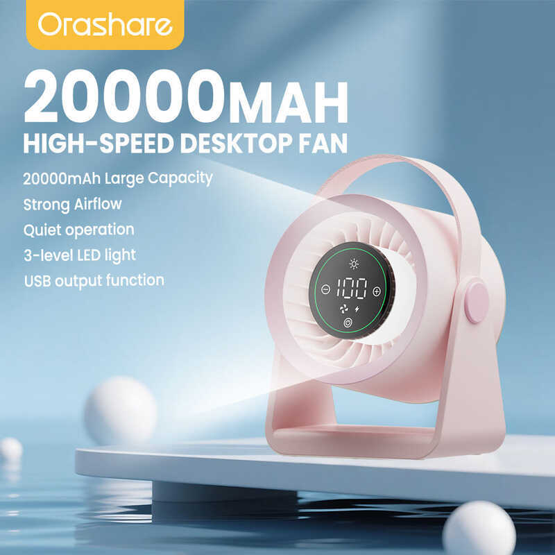 DF Orashare L Max mAh Rechargeable Desk Fan with LED Light Gears Silent High Speed Fan