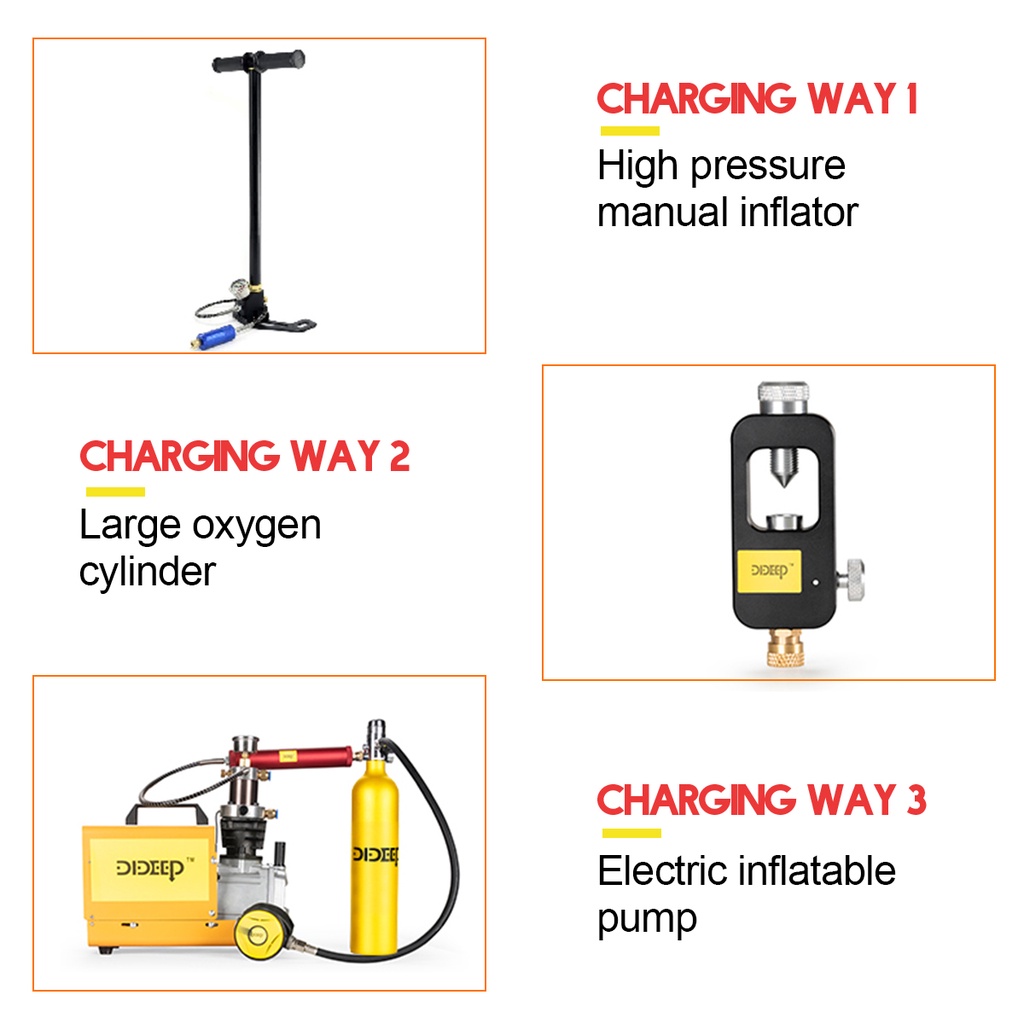 DIDEEP X4000 1L Mini Scuba Diving Tank Oxygen Cylinder Underwater Diving Set Air Oxygen Tank W/ Ada