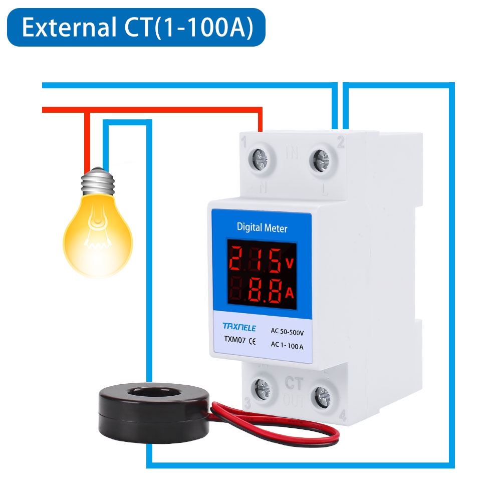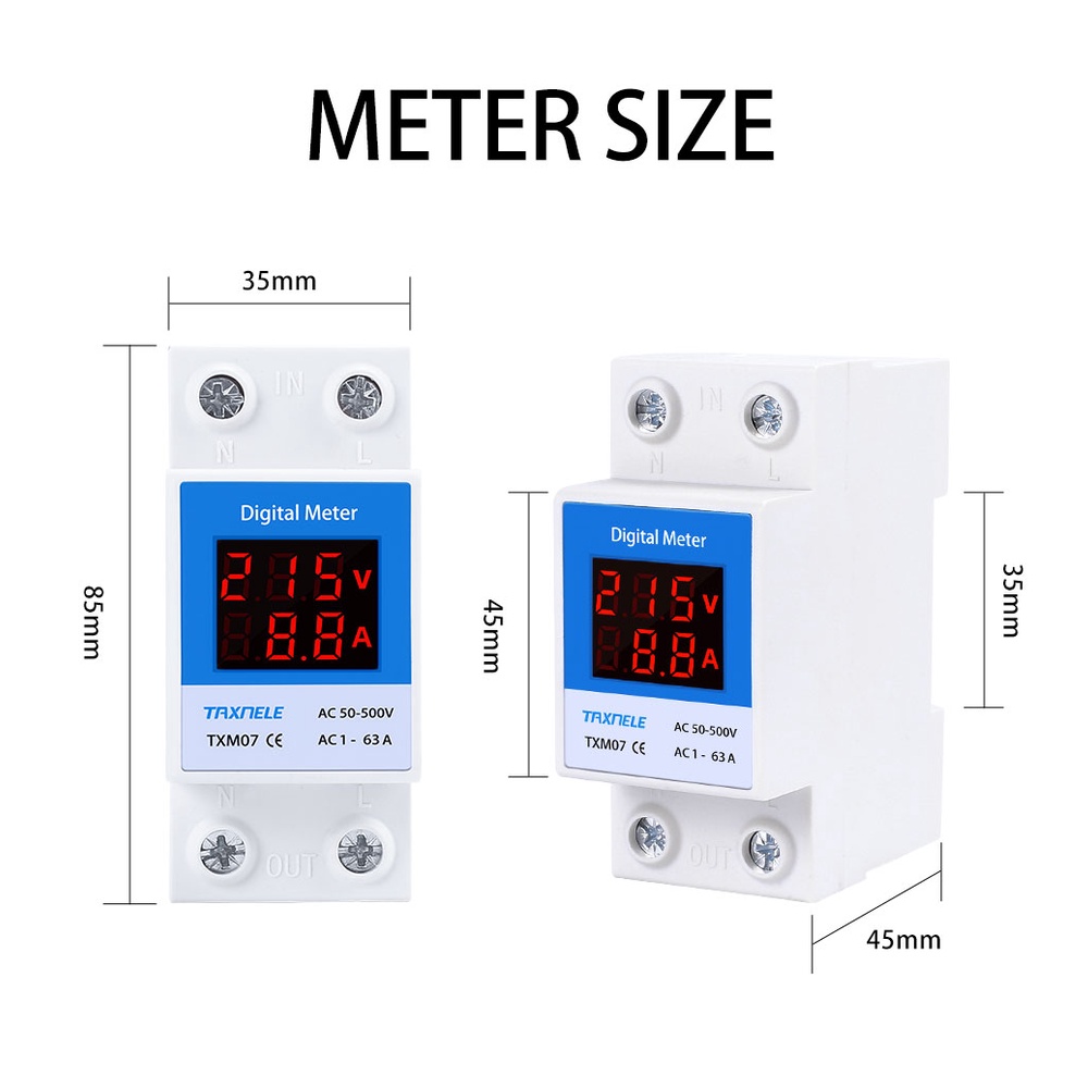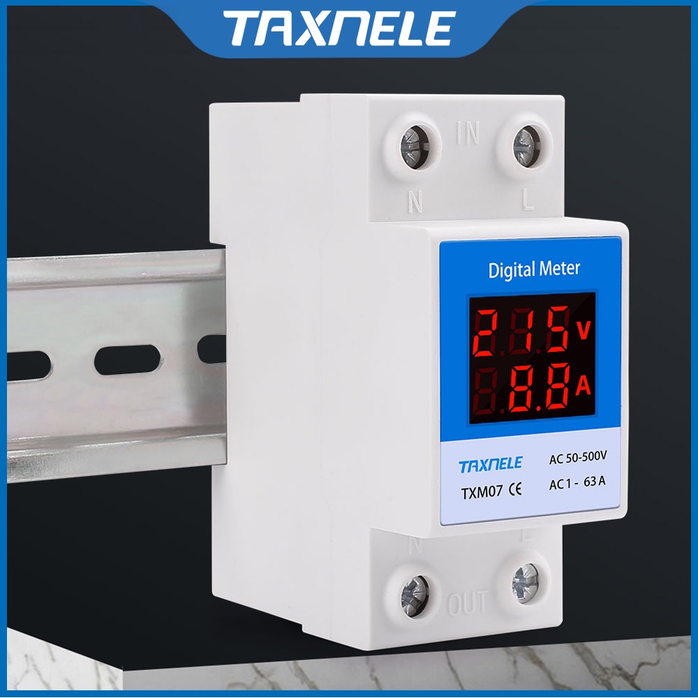DIN Rail Led Digital Voltmeter Ammeter AC 50-500V 220V 380V 1-63A 1-100A Panel Voltage Current Meter Volt Amp Tester Detector