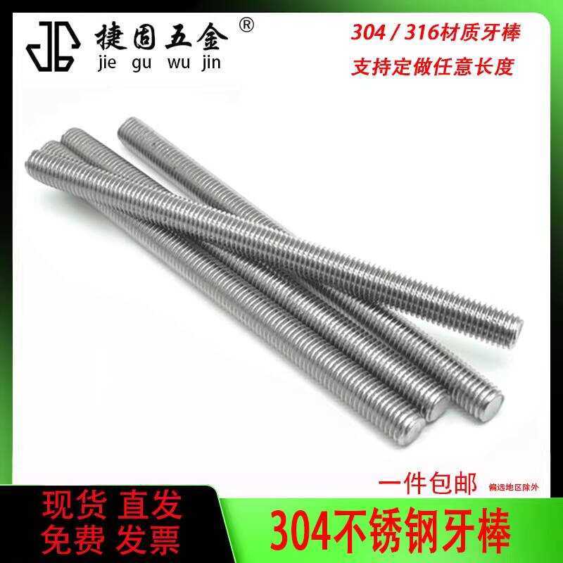 DIN976 Full Thread Rod 304 Stainless Steel Screw Threaded Column M6 M8 M10 M12 M14 M16 M20 Custom