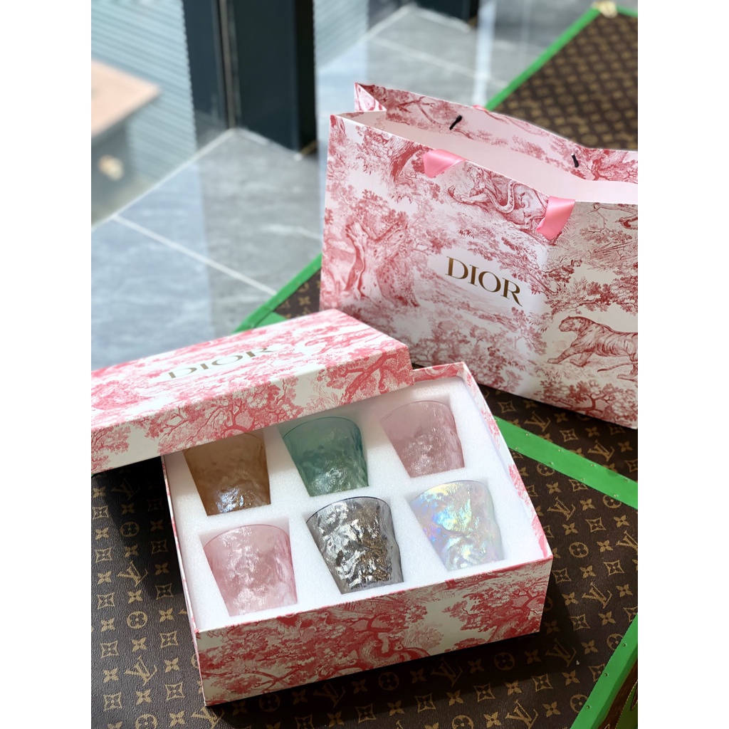 DIOR Super Beautiful, Glacier Cup Glass Art Water Gift Box Package, 6-Piece Set.