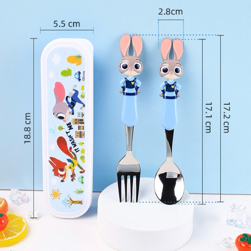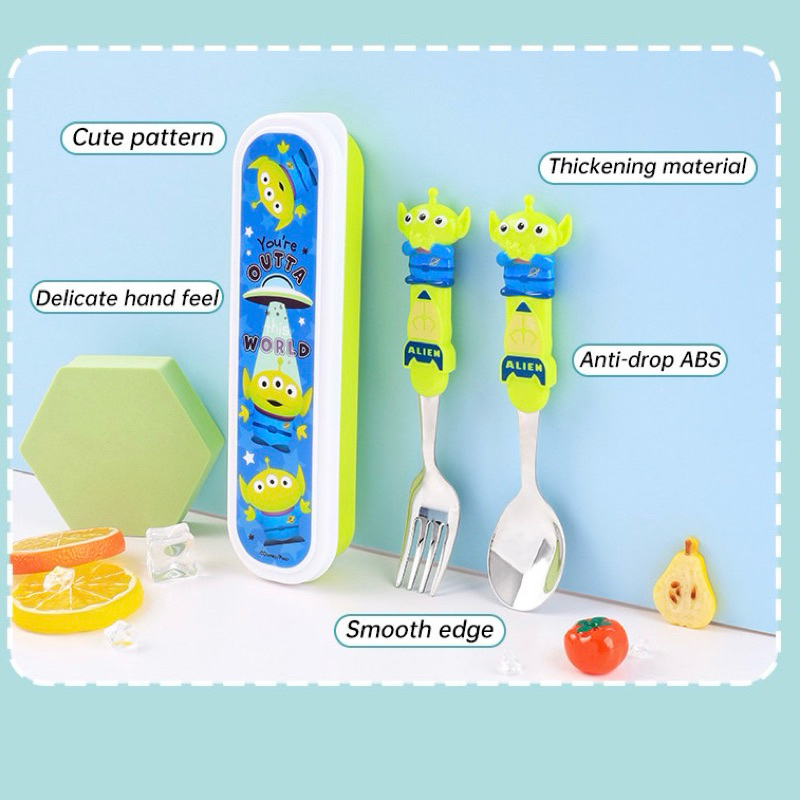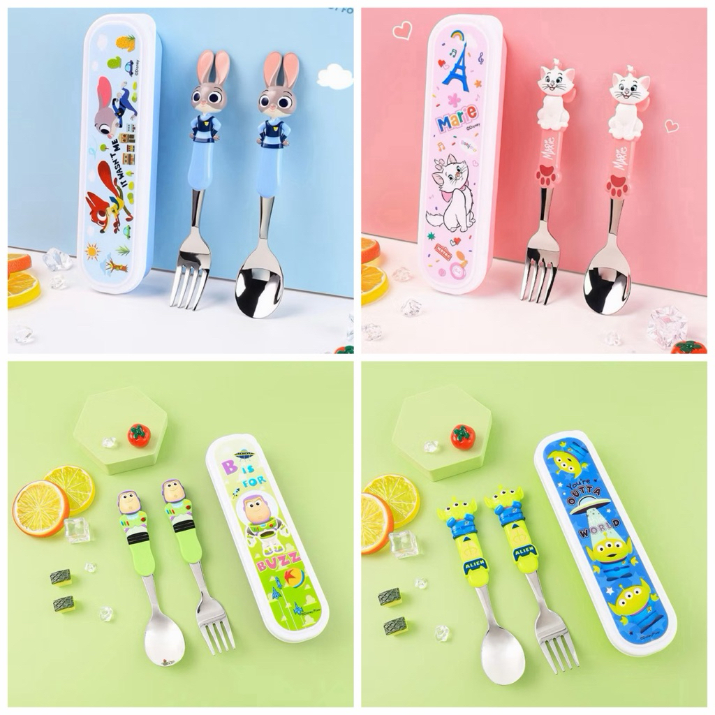 DISNEY CHILDREN'S CUTLERY SET (SPOONS + FORKS + STORAGE BOX) Lotso Zootopia Judy Toy Story Alien Buzz Marie/