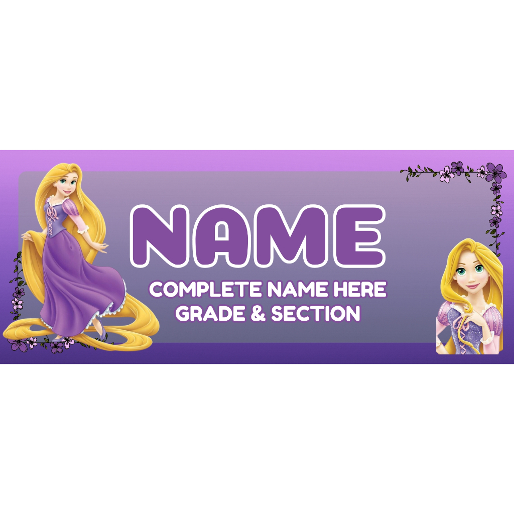 DISNEY PRINCESS Designs - Customized PVC or LAMINATED School Name Tag for Kids (Back to Back Print)