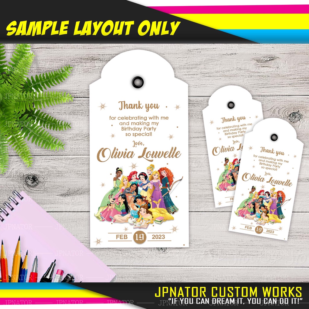 DISNEY PRINCESS Souvenir Tag / Christening Tag / Baptismal Tag /Birthday Tag-With String