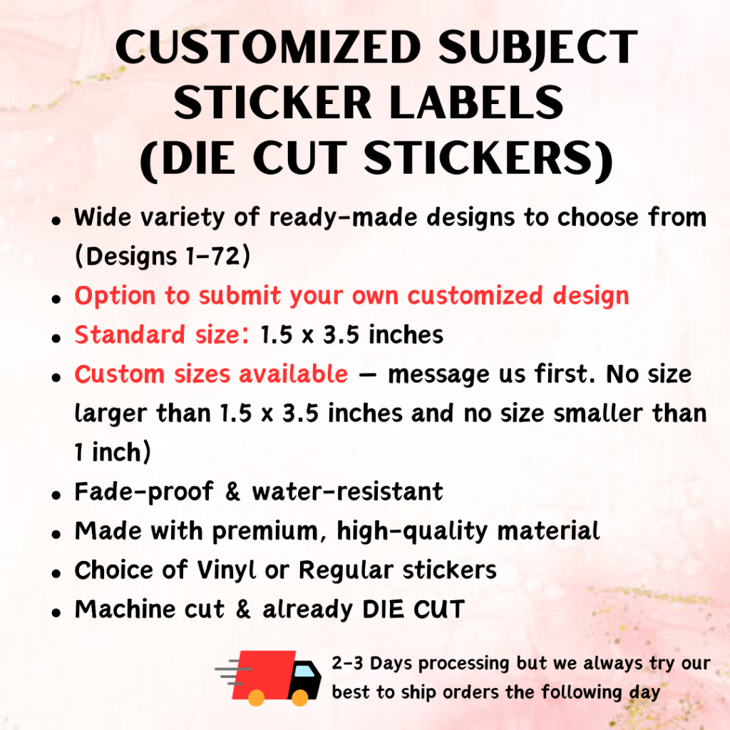 Customized Subject Sticker Labels (Die Cut) | Name/Subject Vinyl Stickers | Waterproof & Fade-Proof