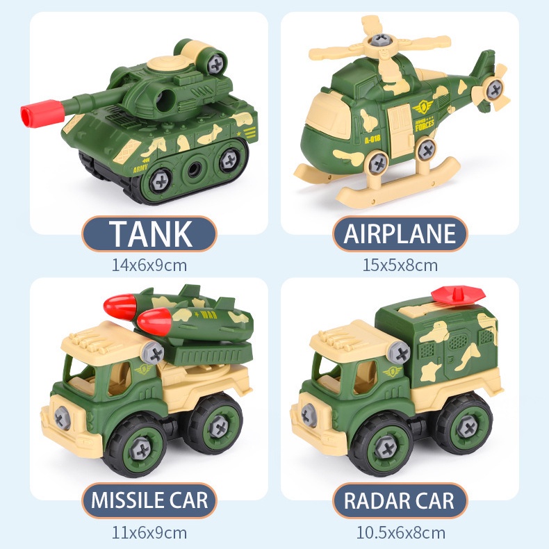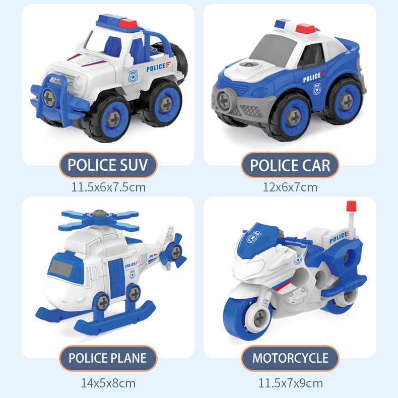 DIY Assembly Tank military Toy Police Vehicles Disassembly Deformation Toys Pull Back Helicopter Motorcycle Patrol Car Escort Car Children Gifts