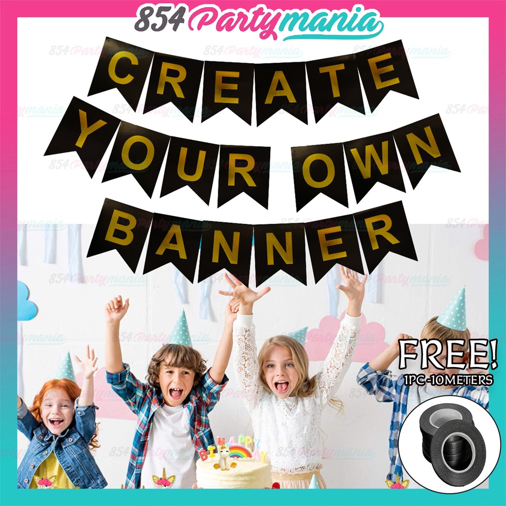 DIY Black Letter Banner Big Size DIY Banner Gold Stamping Alphabets Letters and Numbers free ribbon