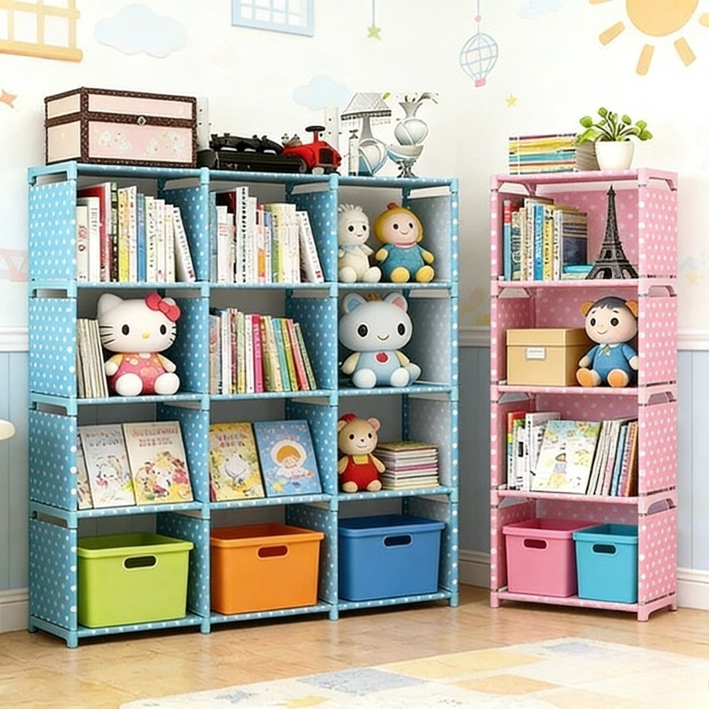Kid Toy Storage Rack DIY Simple BookShelf Large School Bookshelf Home MultiFunction Storage Rack