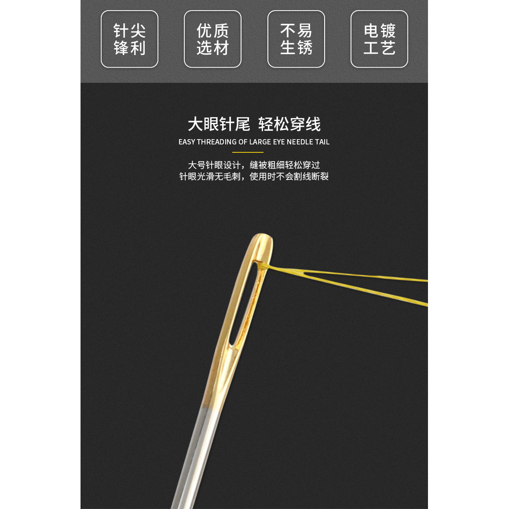 DIY Hand Sewing Needle Gold Tail Side Hole Needle No Threading Needle Home Sewing Needle, Double Swallow Curved Needle