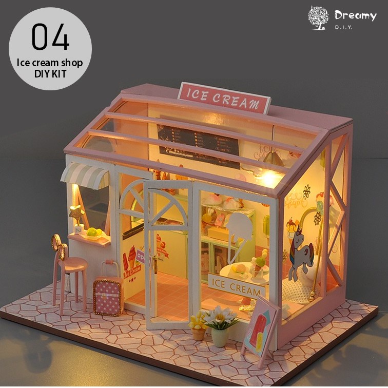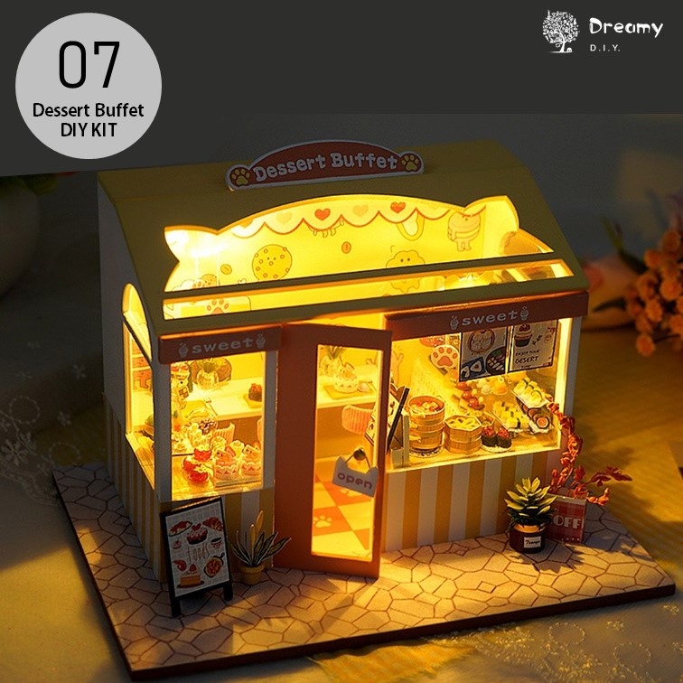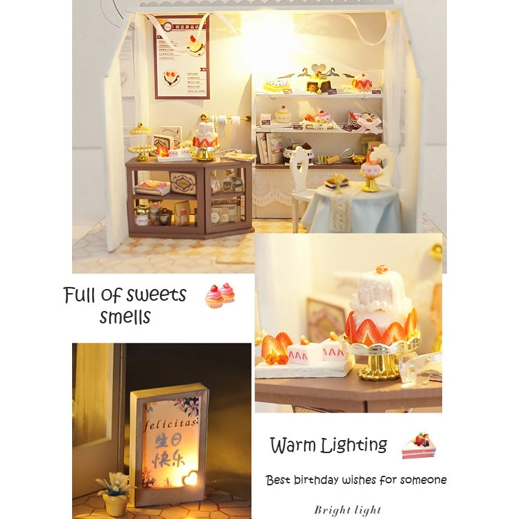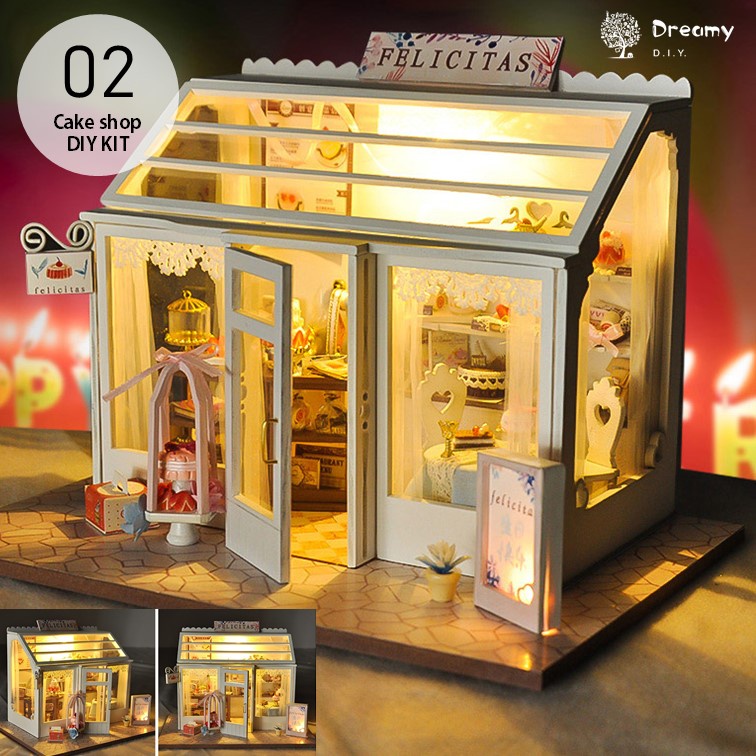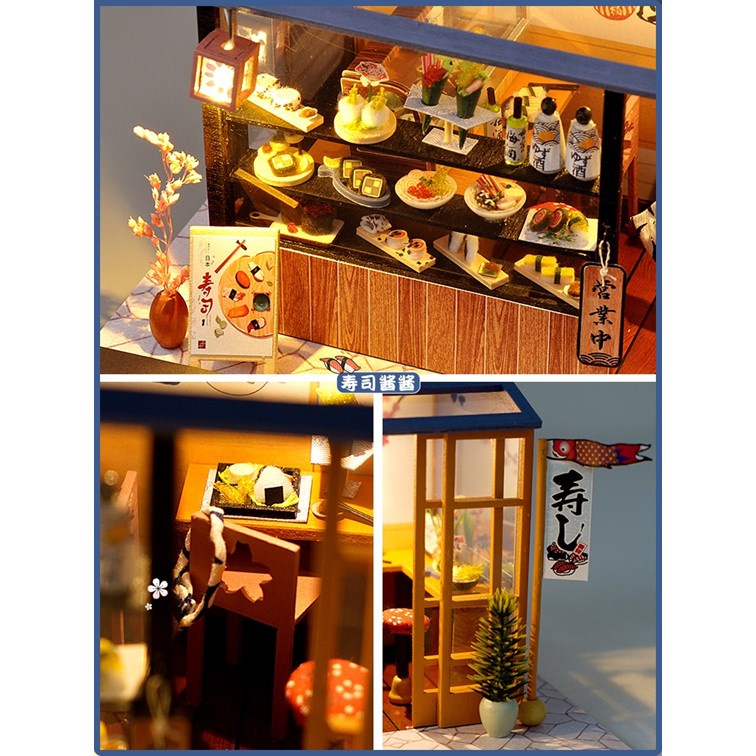 DIY Miniature Mini Shop Dollhouse Kit with LED light (Sushi / Cake / Dessert / Art /Bakery ) doll house