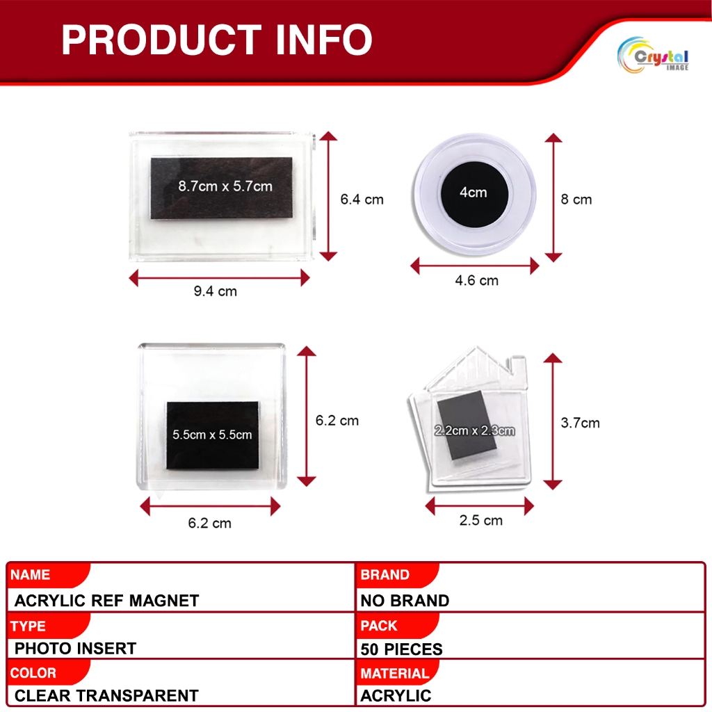 Acrylic Ref Magnet Photo Insert 50PCS | Rectangle Square Circle House | Magnetic Display