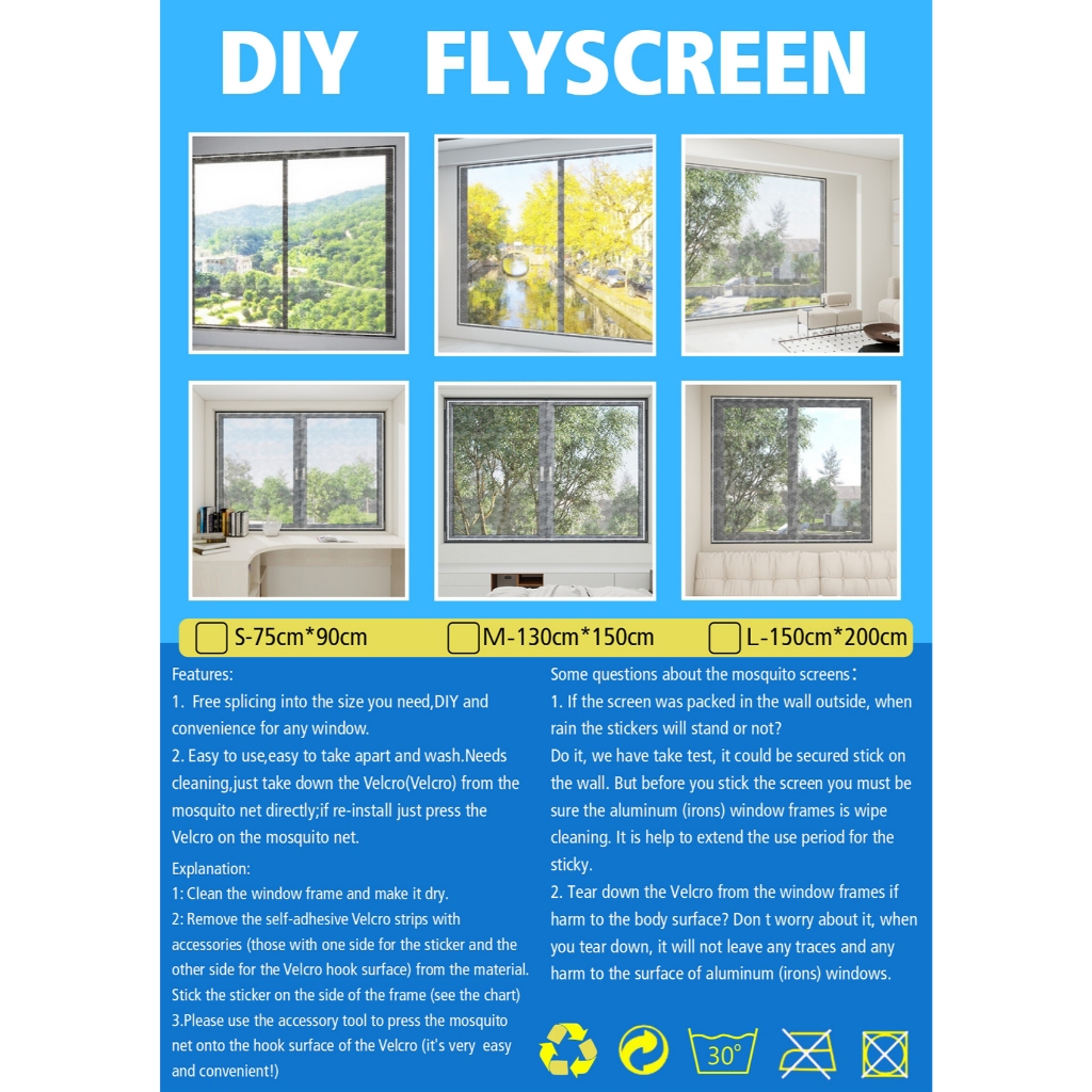 DIY Self-adhesive mosquito screen anti-mosquito window screening Net Washable Detachable Mosquito