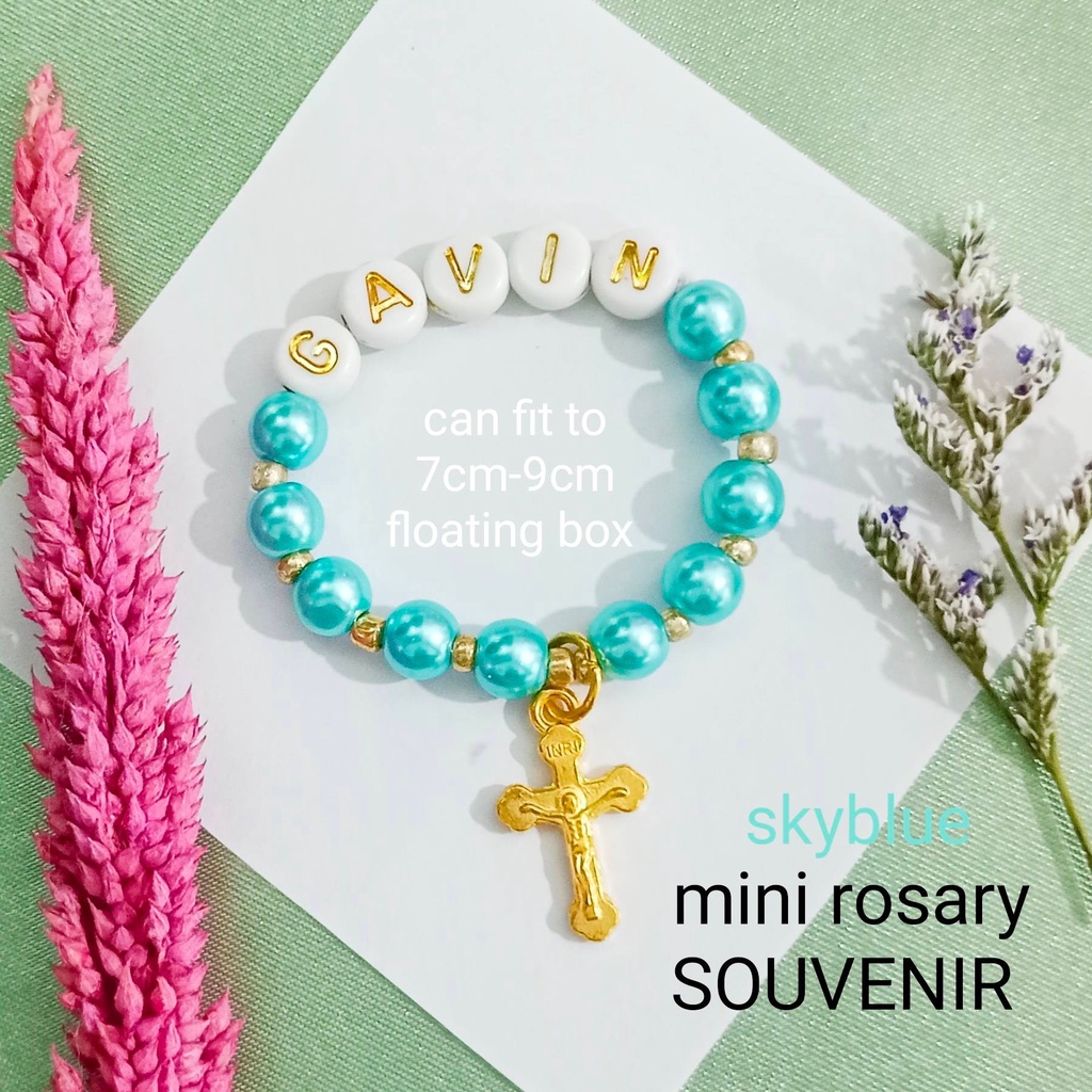 DIY Souvenir mini rosary Aqua blue | Christening Souvenir | Rosary with name