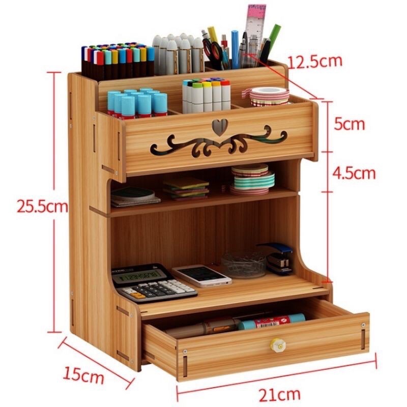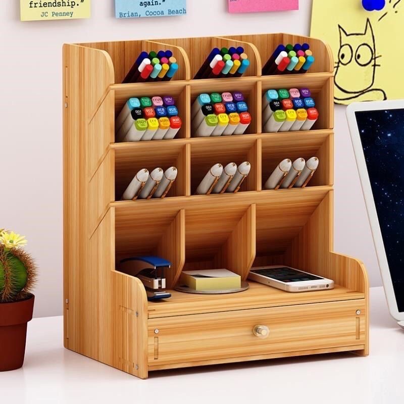 DIY Wooden Desk Organizer Pen Holder Storage Box