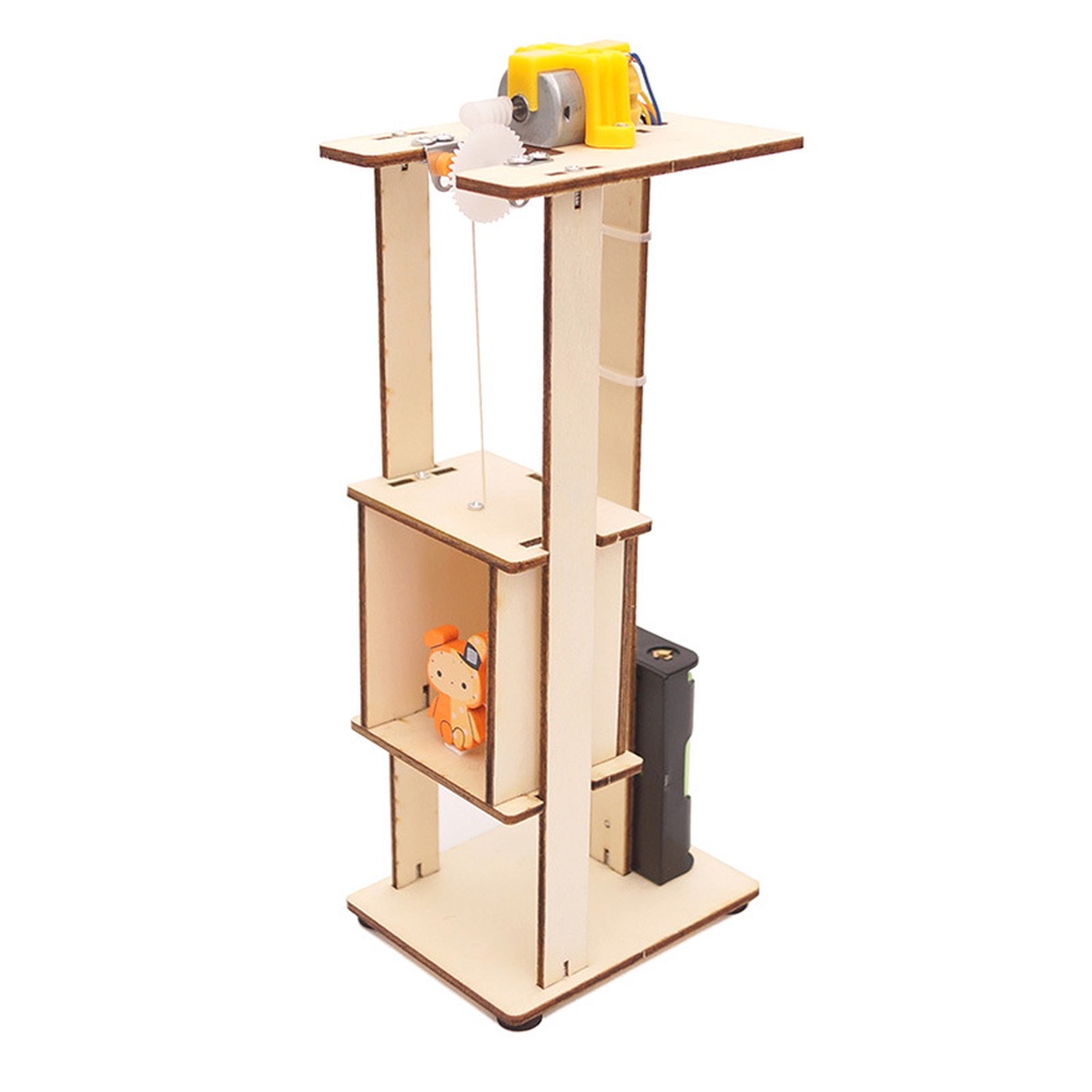 DIY Wooden Remote Control Electric Lift Elevator Puzzles Kids Science Toys Experiment Kits STEM Education School Project