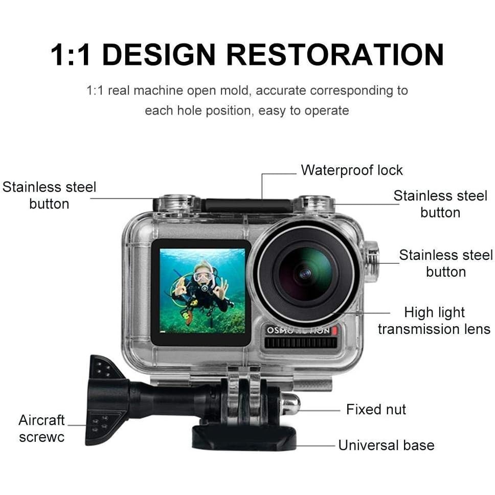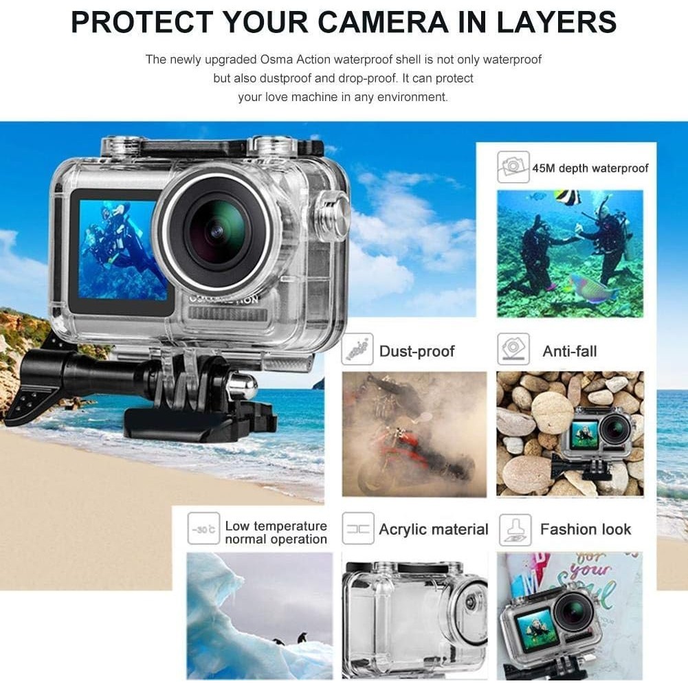 DJI Osmo Action 1 Waterproof Case, 45M Diving Housing Protective Shell Underwater Accessories for OSMO Acion Sports Camera