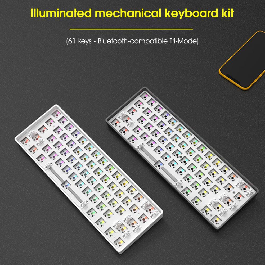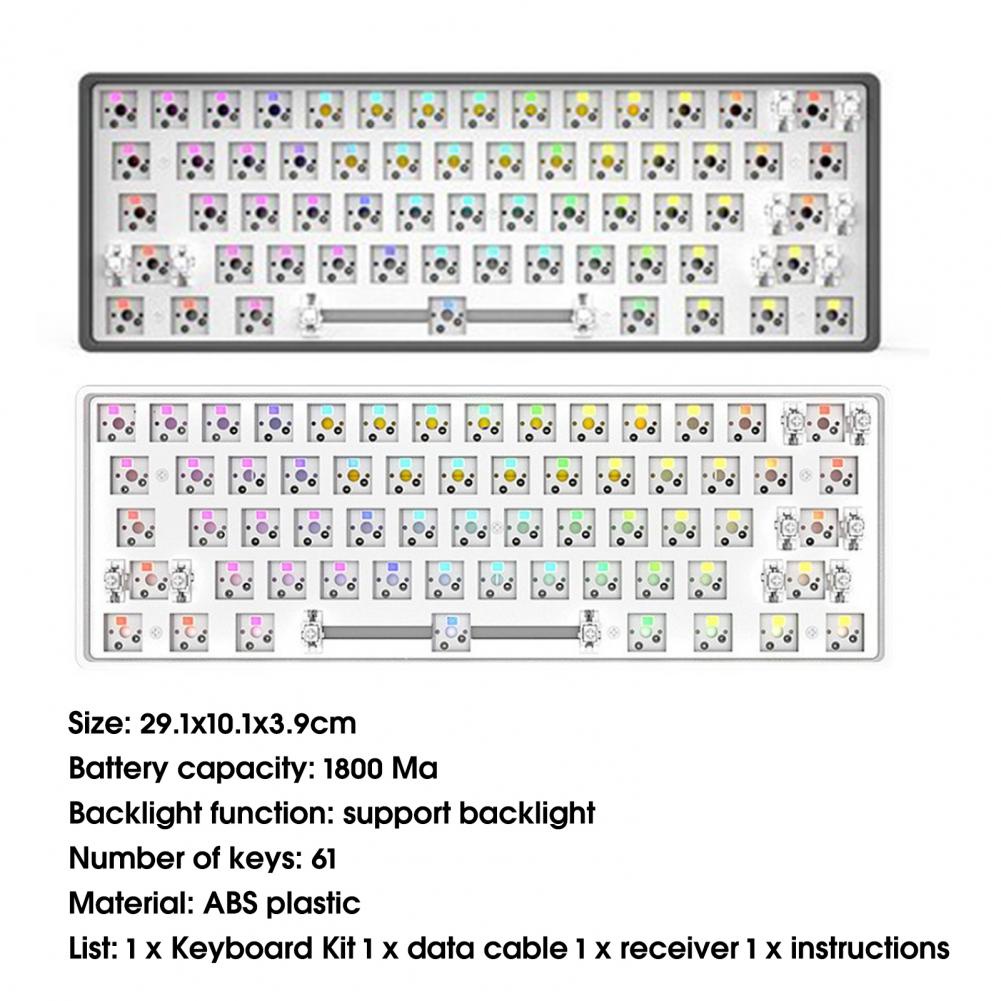 DK61 Mechanical Keyboard Kit RGB Light Full-Key Hot Swappable Customized Switch Supports 3-Pin/5-Pin Switch Bluetooth 5.0/Wireless 2.4G/Type-C Connection Mode