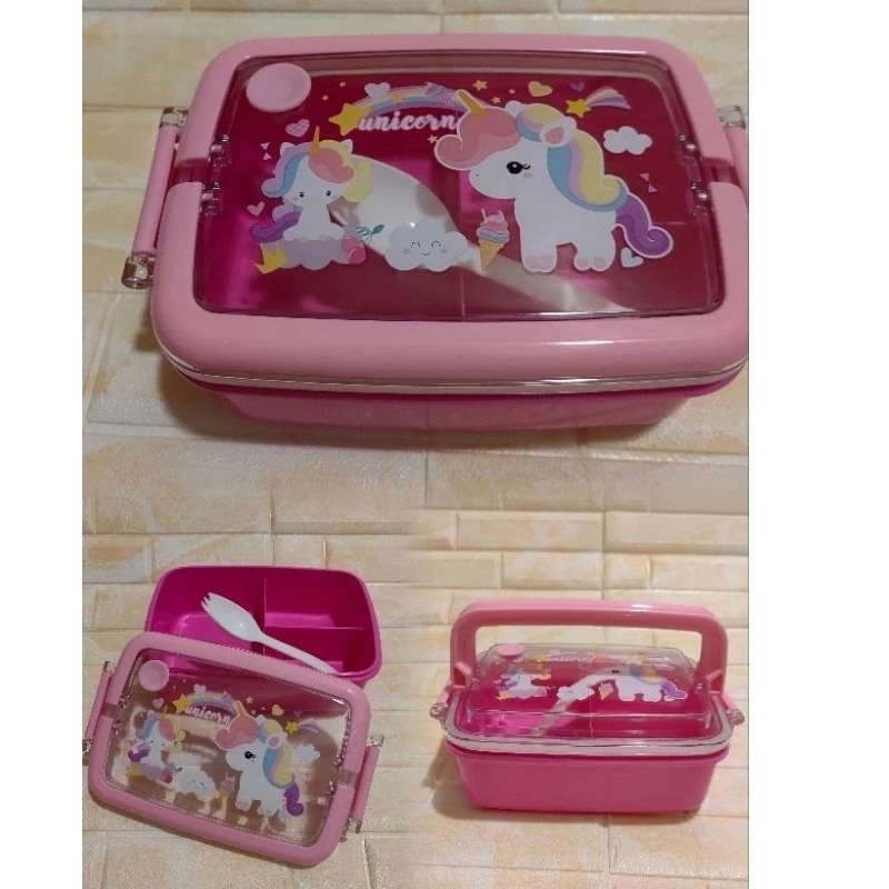 DM Cartoon Lunch Box Kid Shool Lunch Box with Spoon Lightweight Lunch Box for Kids