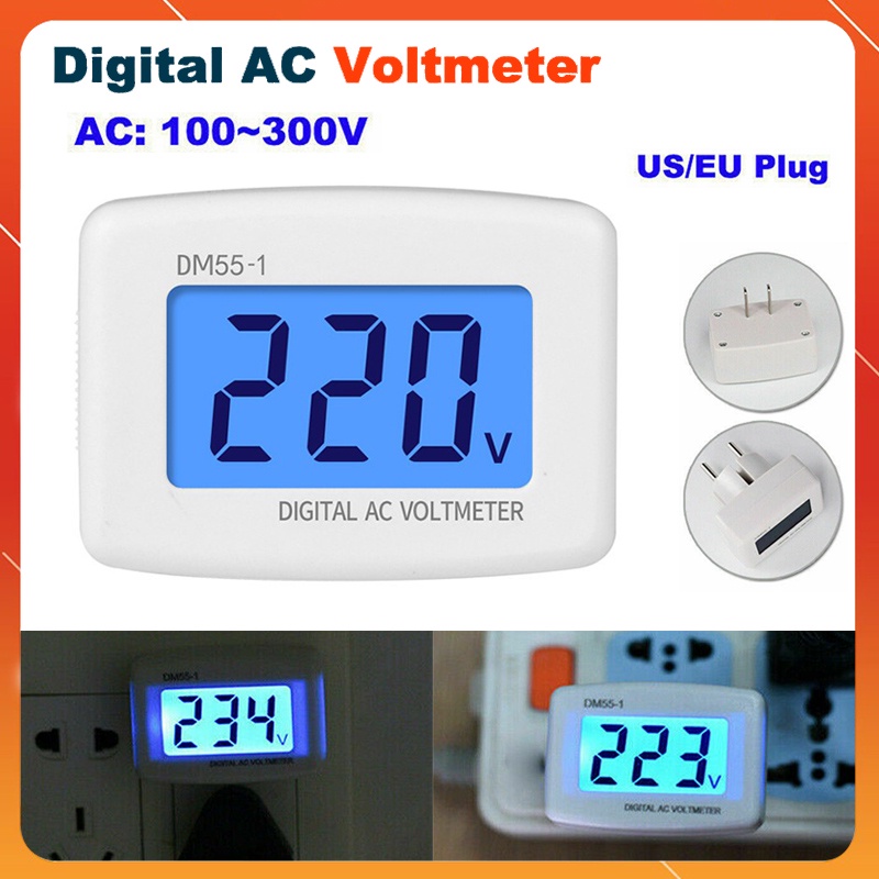 DM55-1 80-300V AC Digital Volt meter 220 v US Plug AC Voltmeter Socket Voltage Meter Tester LCD Display Voltmeter Meter for House hold