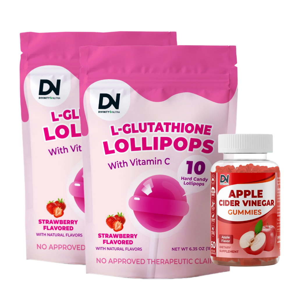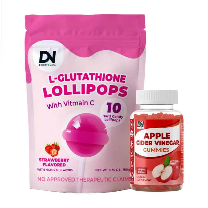 DN L-Glutathione Lollipops and Gummies Vitamin C Dietary Supplement Strawberry Candy +ACV 60 Gummies