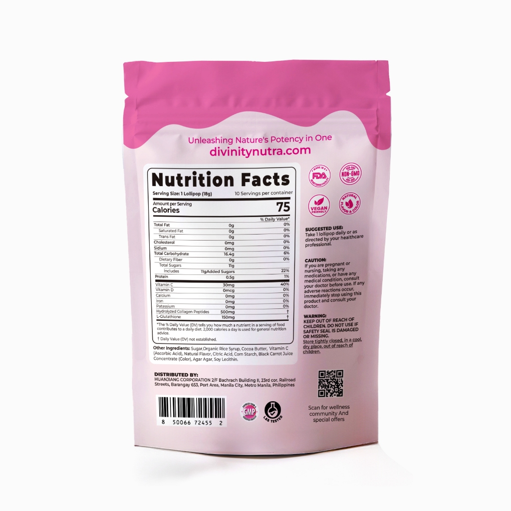 DN L-Glutathione Lollipops with Vitamin C Dietary Supplement Lollipops Strawberry Flavor Hard Candy