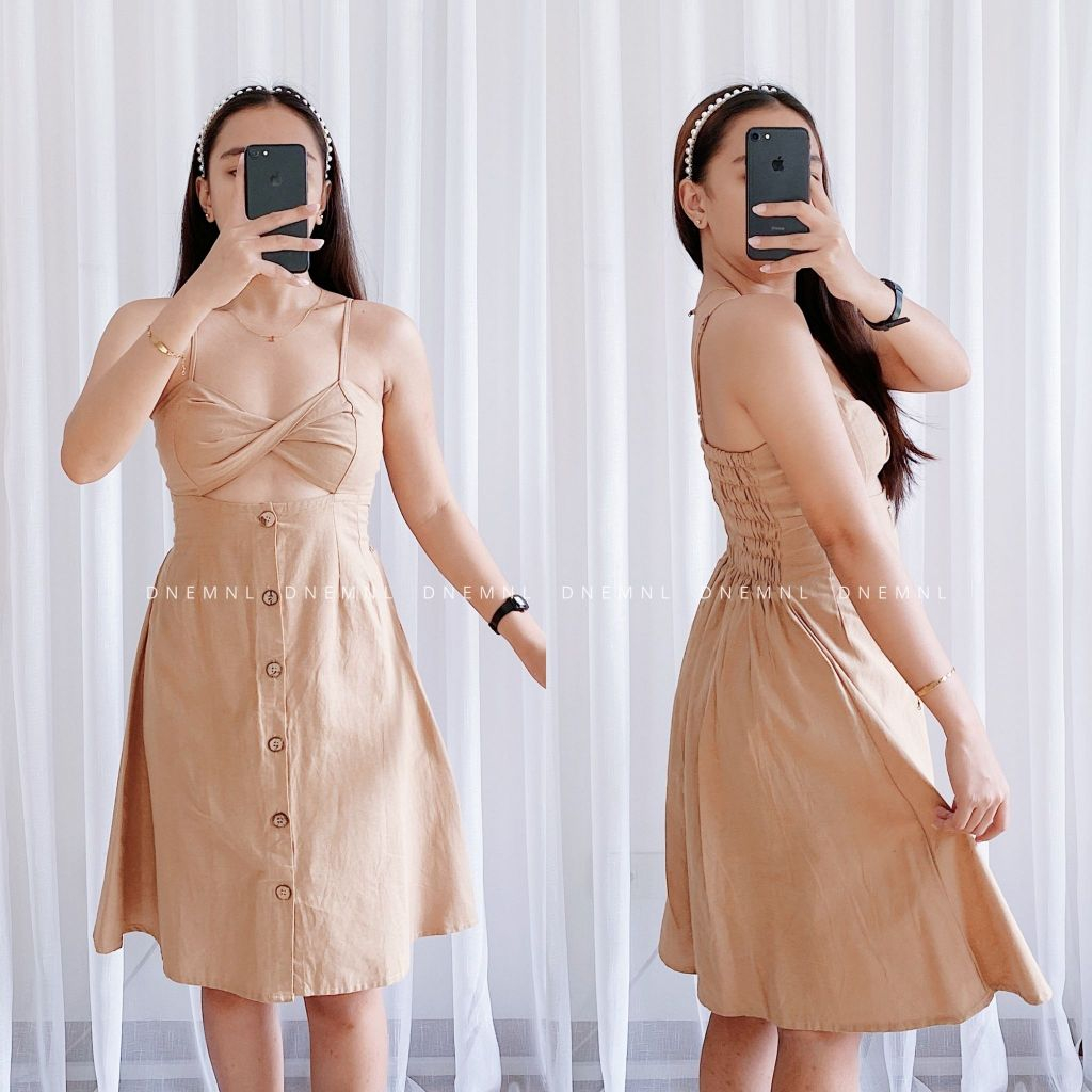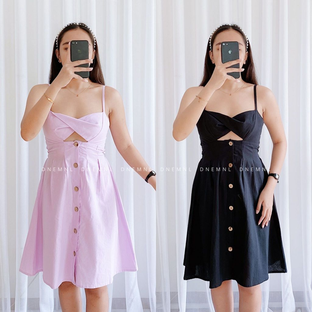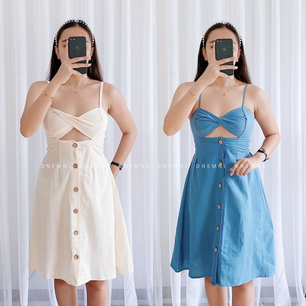 DNEMNLPH Tania Twisted Button String Dress - Trendy Korean BKK Sexy Garter Corset Midi Long Plain