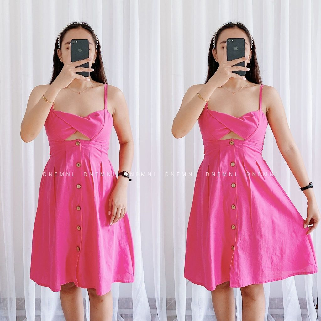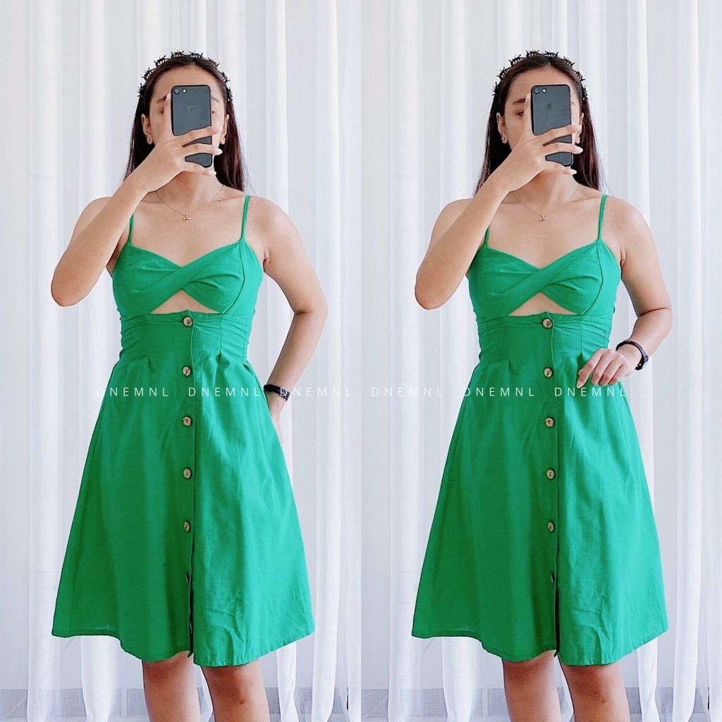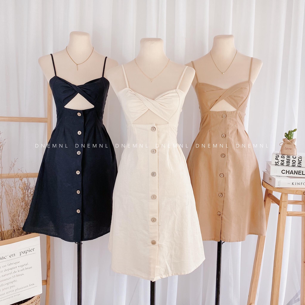 DNEMNLPH Tania Twisted Button String Dress - Trendy Korean BKK Sexy Garter Corset Midi Long Plain