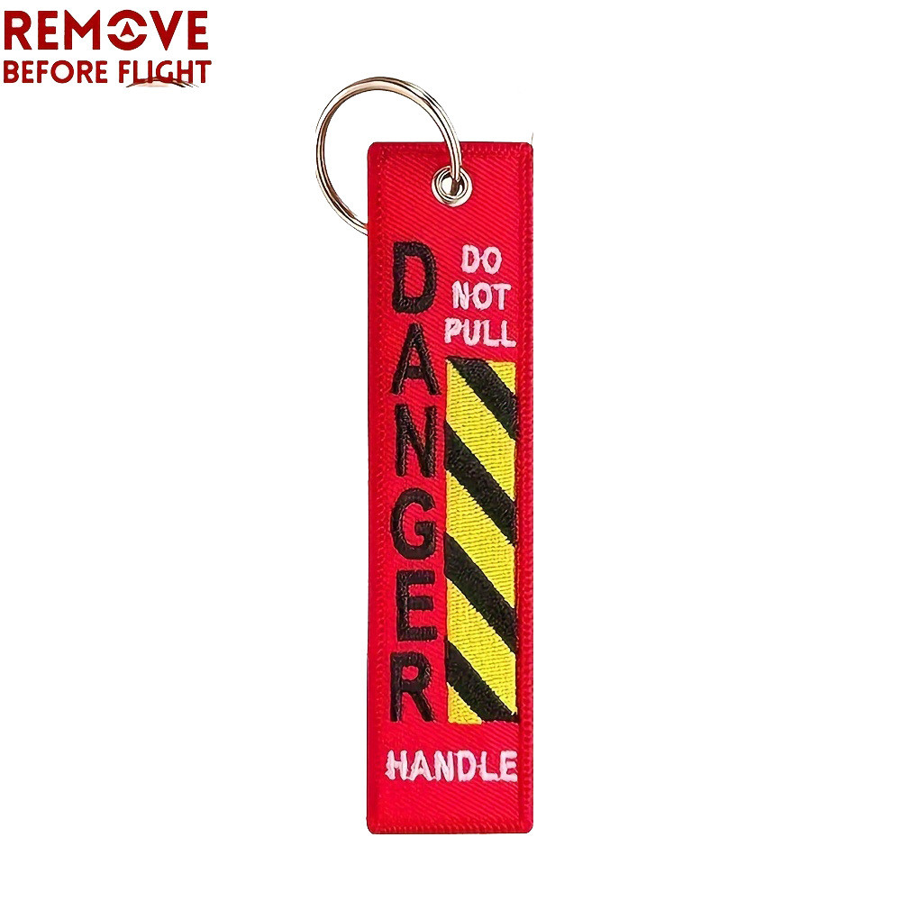 DO NOT PULL Red background Black embroidered Danger keychain gift pendant