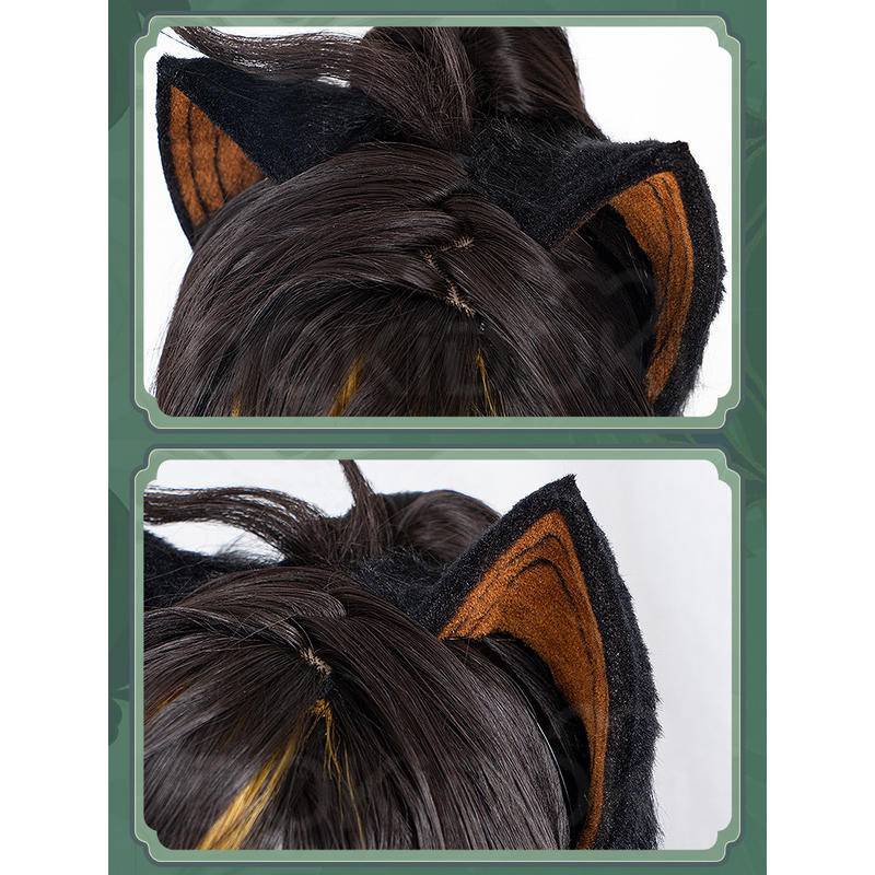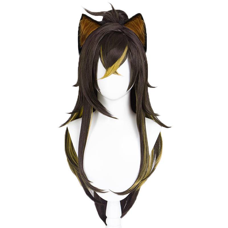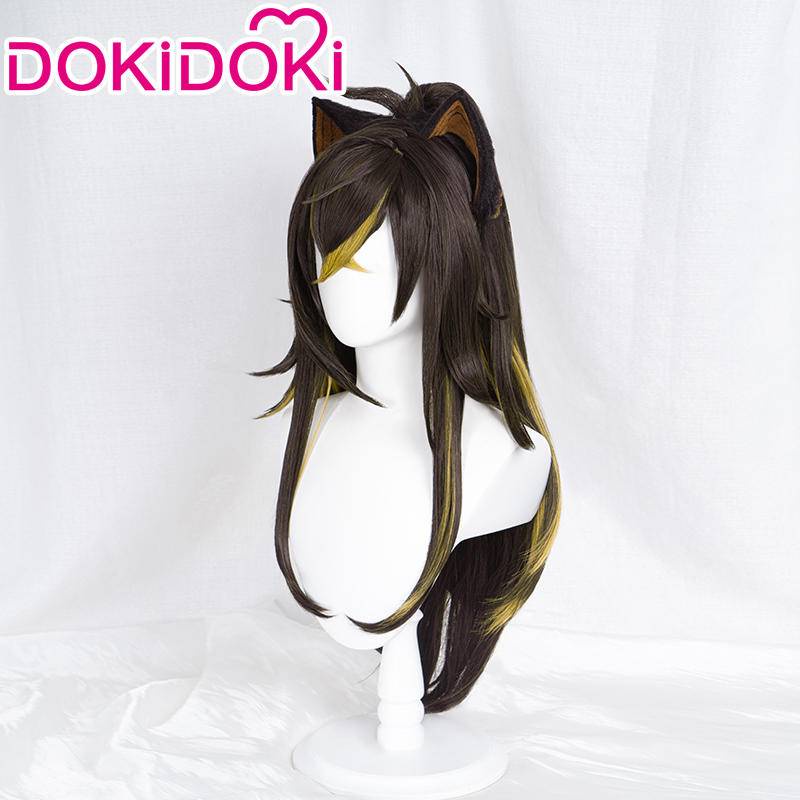 DOKIDOKI Genshin Impact dehya cosplay wig yellow highlights animal ears