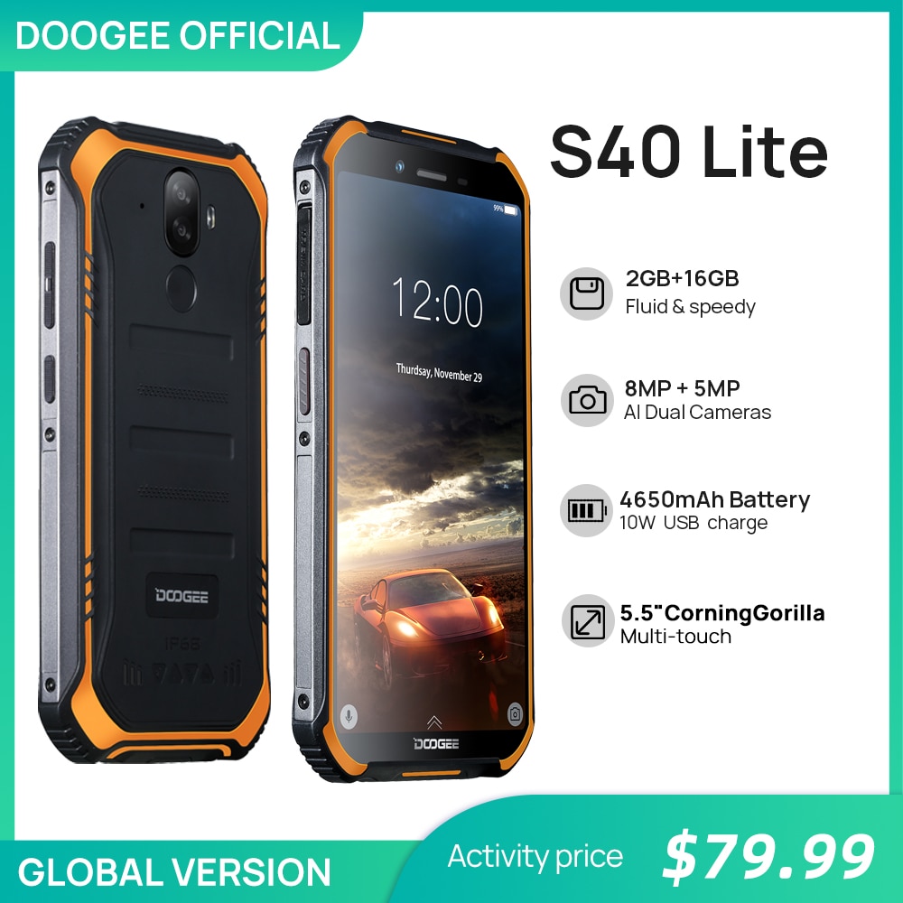 DOOGEE S40 Lite Rugged SmartPhone Mobile Phone 5.5inch Display 4650mAh 8.0MP Fingerprint IP68 Quad C