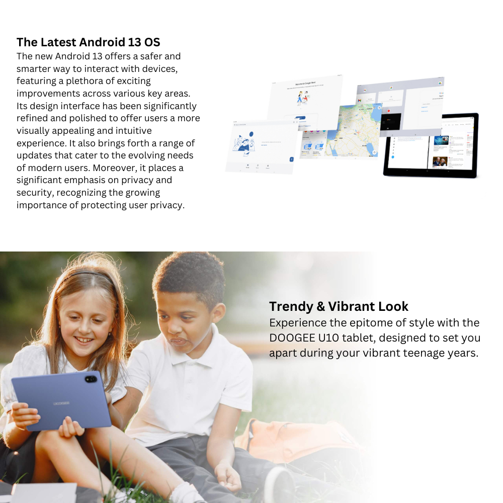 DOOGEE U10 Tablet | 10.1" IPS HD Display | Quad Core RK3562 | Android 13 | 9GB (4+5GB) RAM+128GB ROM