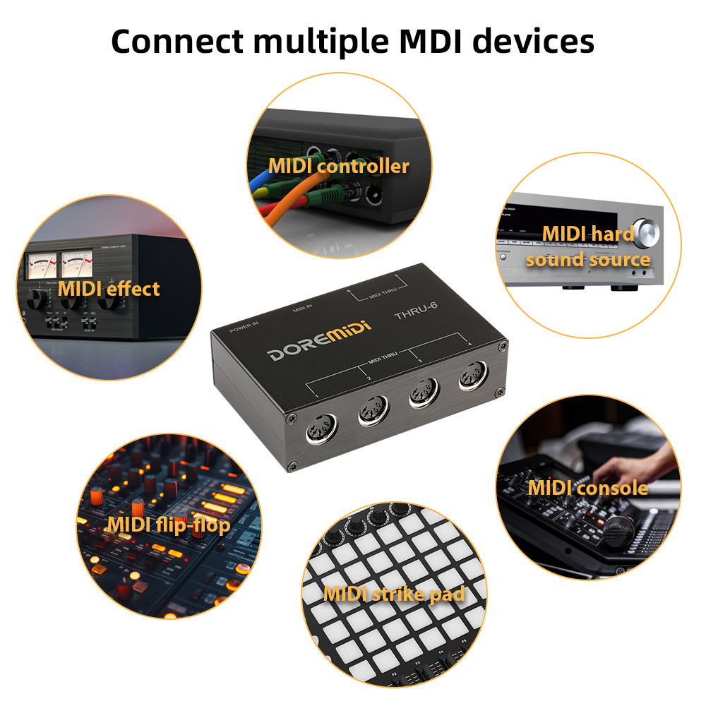 DOREMiDi MIDI Box 1-in 6-out MIDI Splitter Converter Host Box Plug and Play Compatible with All MIDI Standard Interfaces Devices MIDI Interface