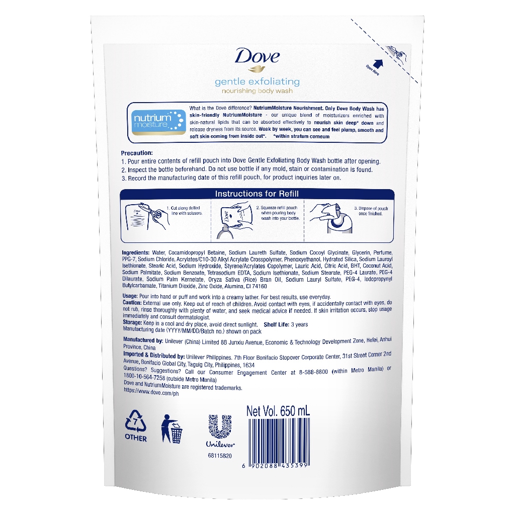DOVE Body Wash Refill Pouch Gentle Exfoliating 650 mL