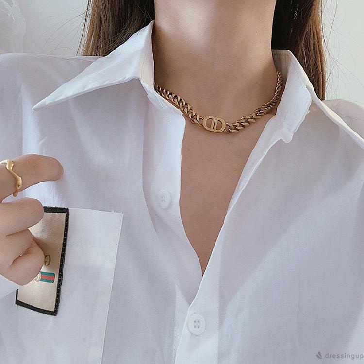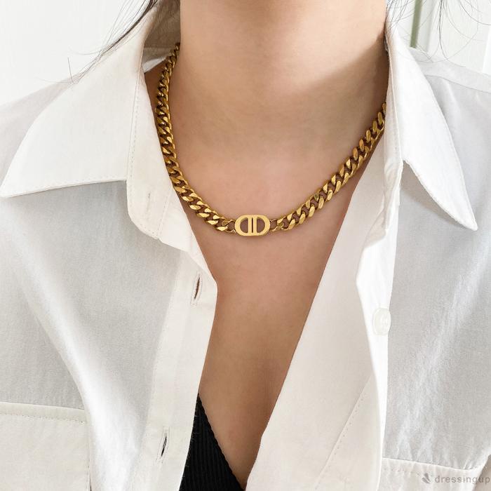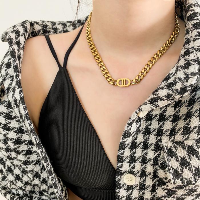 DRE-Women Pig Nose Punk Style Chunky Link Chain Necklace