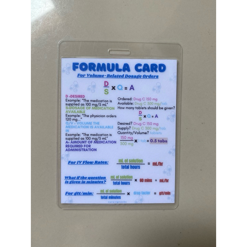 DRUG COMPUTATION FORMULA CARD | NURSING NOTES HUB