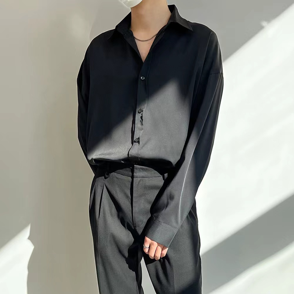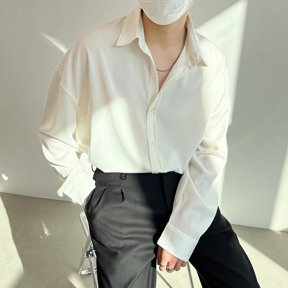 DS Classic Korean Men's Plain Casual Fashion Long Sleeve Polo Shirts for Men