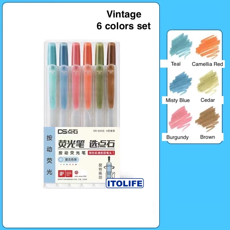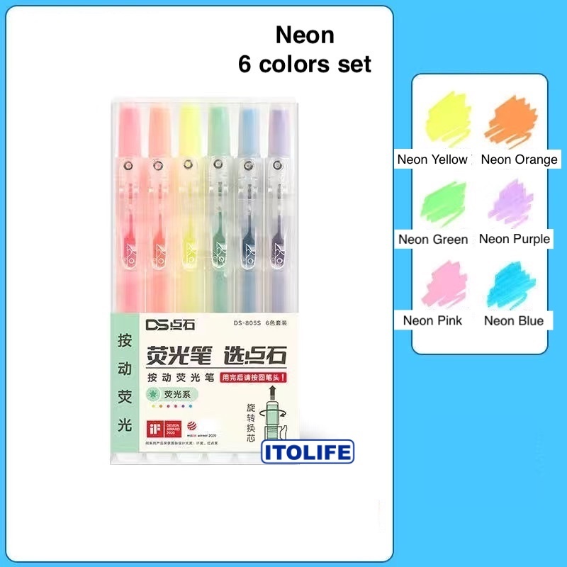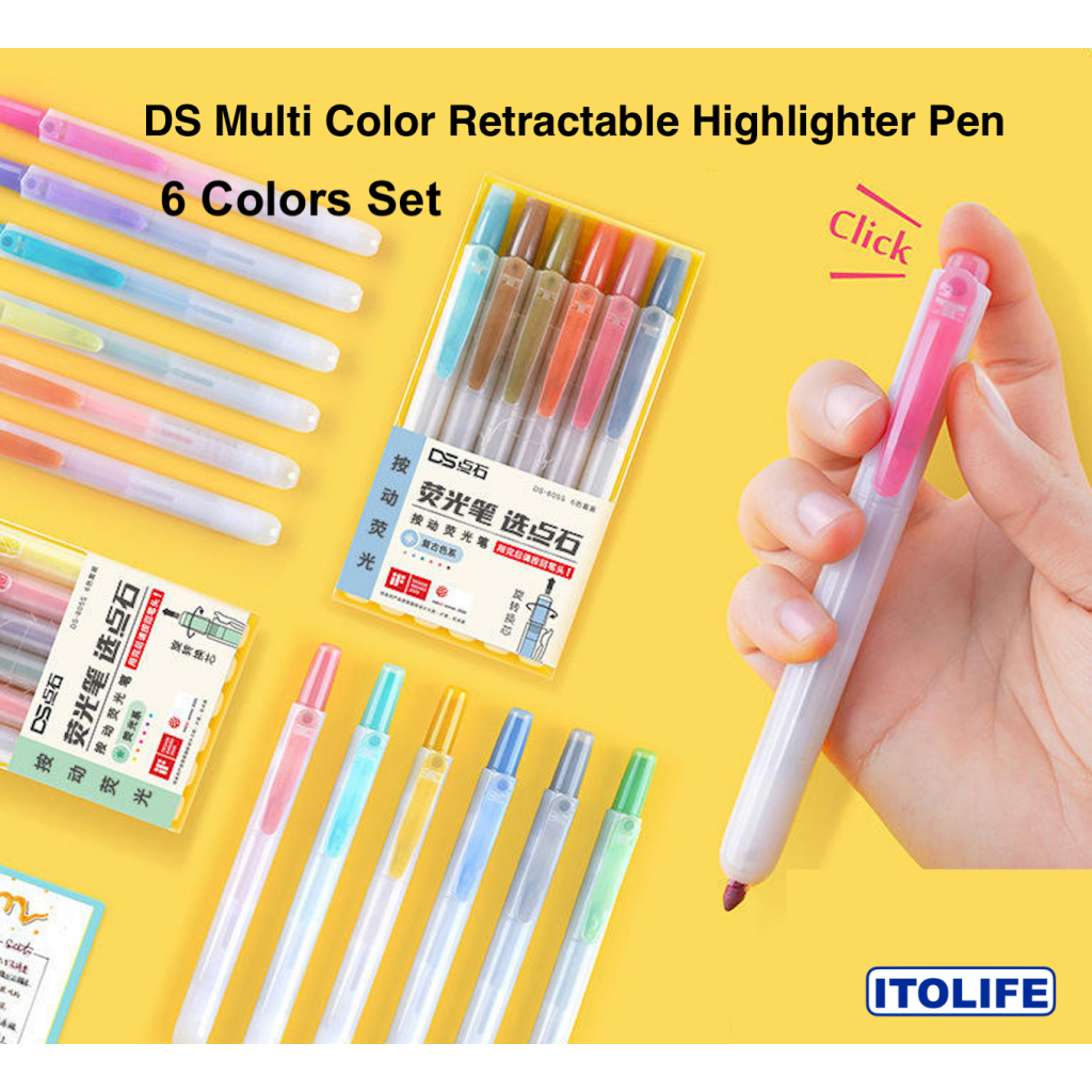 DS Multi Color Retractable Highlighter Pen (6 Colors Set)
