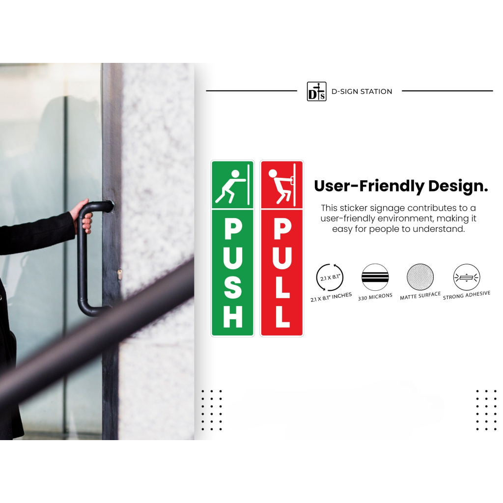 DSIGN Push Pull Door Sticker Signage l Door Signage l Vinyl Sticker l Guide Signs